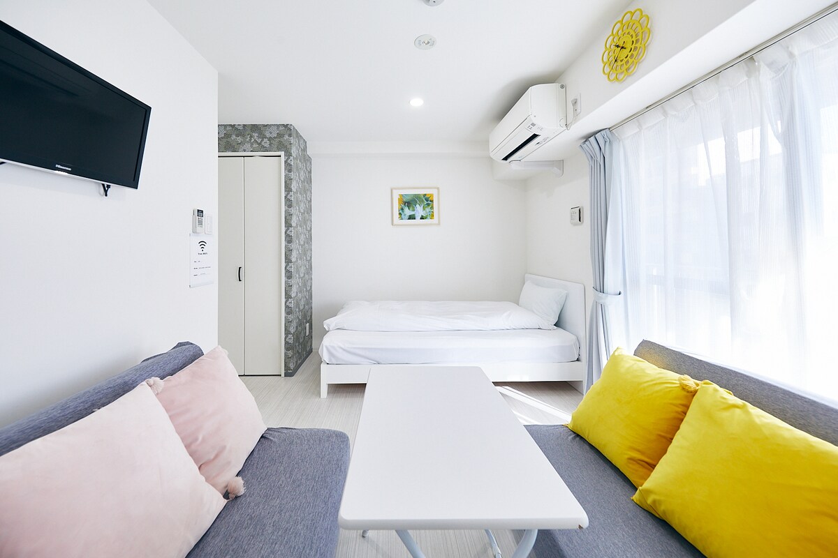 ダブルベッド1台、布団2セット、調理器具、映画用プロジェクター、スクリーンとキッチン付き、4名様まで宿泊可能なお部屋です。 <おすすめPOINT> ■新大阪駅から徒歩約5分、コンビニ徒歩2分 ■鍵はスマートロックでキーレス滞在♪ ■キッチンには調理器具・湯沸しポット・電子レンジ有り☆ ■長期滞在や出張にもピッタリ♪ ■コインランドリー完備で長期滞在や出張にもピッタリ♪ <その他アメニティ類> 空気清浄機・エアコン・ヘアドライヤー・シャンプー・コンディショナー ボディソープ・ハンガー・掃除機・プロジェクター・スクリーン 【 アクセス 】 JR京都/東海道新幹線 新大阪駅より徒歩5分