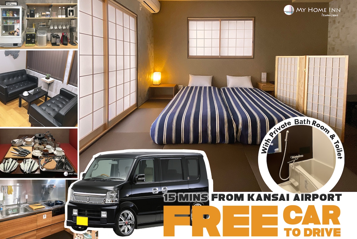 Recently converted from a conventional residential home into a licensed mini boutique hotel, My Home Inn Izumisano offer a unique and self dependent life-in-Japan experience. ★ Unique & Great Value Driving Package ★ Intelligent & Self-dependent Living Style ★ Explore Hidden Attractions in Kansai Area ★ Enjoy cooking in Japan 15 mins drive from Kansai International Airport 18 mins walk from Yoshiminasato station (Nankai Airport Line) Convenience store and sushi restaurants within few mins walk