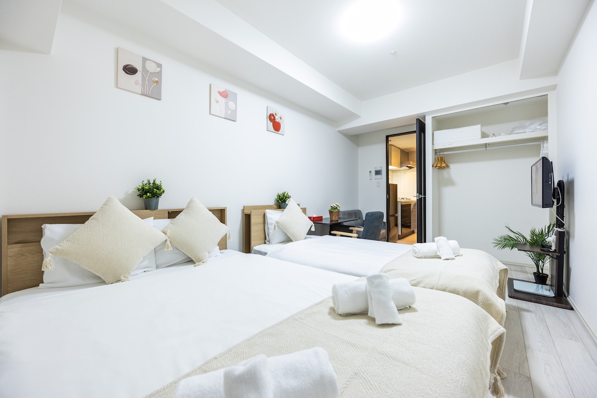 位置: 距離難波、道頓堀、天王寺地鐵只需一站,徒步亦可。 距離大國町地鐵站180米,步行僅需2分鐘。 房型與設施: 雙人臥室 X 2 獨立客廳 獨立廚房 獨立衛浴 適合家庭或小型團體,最多可容納4人。 交通: 地鐵御堂筋線 地鐵四橋線 JR環狀線 南海線等車站均在步行範圍內 前往關西機場:南海線45分鐘直達,無需轉車。 前往環球影城:搭乘JR只需25分鐘。 注意事項: 1.整個入住期間我們免費提供每位客人1條全新毛巾,如需加購每條新毛巾收費200日圓。 2.入住期間不提供房間清潔服務。 3.晚上10點後請保持安靜。 4.大樓內禁煙。1樓門外的自動販賣機前可以抽煙,但請勿亂丟菸蒂。