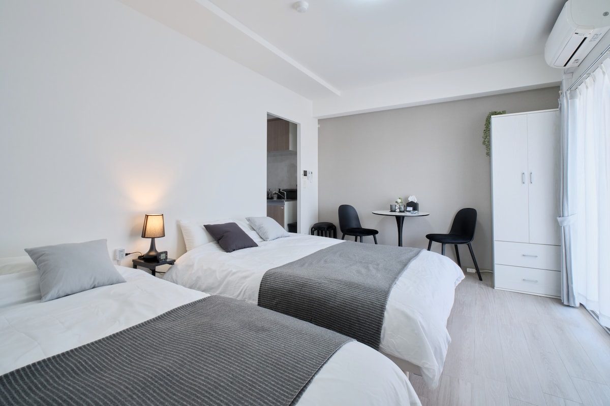 ①大家好,我是房东Bi,欢迎来到我的airbnb,在日本的旅行住宿请放心交给我们。 我与工作人员也24小时在线,当房间出现问题、或者物品使用完欠缺时,工作人员会第一时间为您补上。 旅行期间,有疑虑的地方都可以告诉工作人员,及时的为您解决旅行困难。 希望我的Airbnb能带给您好服务、安全安心、干净、美好的旅行回忆 ②房间位于大阪市的美食腹地、吃货天堂的黑门市场步行2分钟。日本桥地铁站步行3分钟。 ③面积大小为43m² 的一室一厅房间,房间舒适宽敞,很有乐趣。 ④房内的卧室是两张双人床,客厅有一张餐桌,适合2人~4人的顾客入住。 「双人床*2」 ⑤房内洗漱用品均为知名品牌。 电器物品使用松下品牌 拖鞋、枕头、被褥都使用日本家居品牌MUJI(无印良品)。 ⑥我们也考虑境外旅行大家旅居的舒适感。 「所有的床垫都采用高标准高品质,自己的清扫团队也保证大家房间入住时,房间干净整洁。」