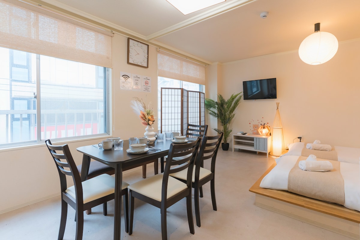 【今日限时特价】5分到难波心斋桥、10分到大阪巨蛋、可住6人,家庭民宿。观光购物便捷,首选