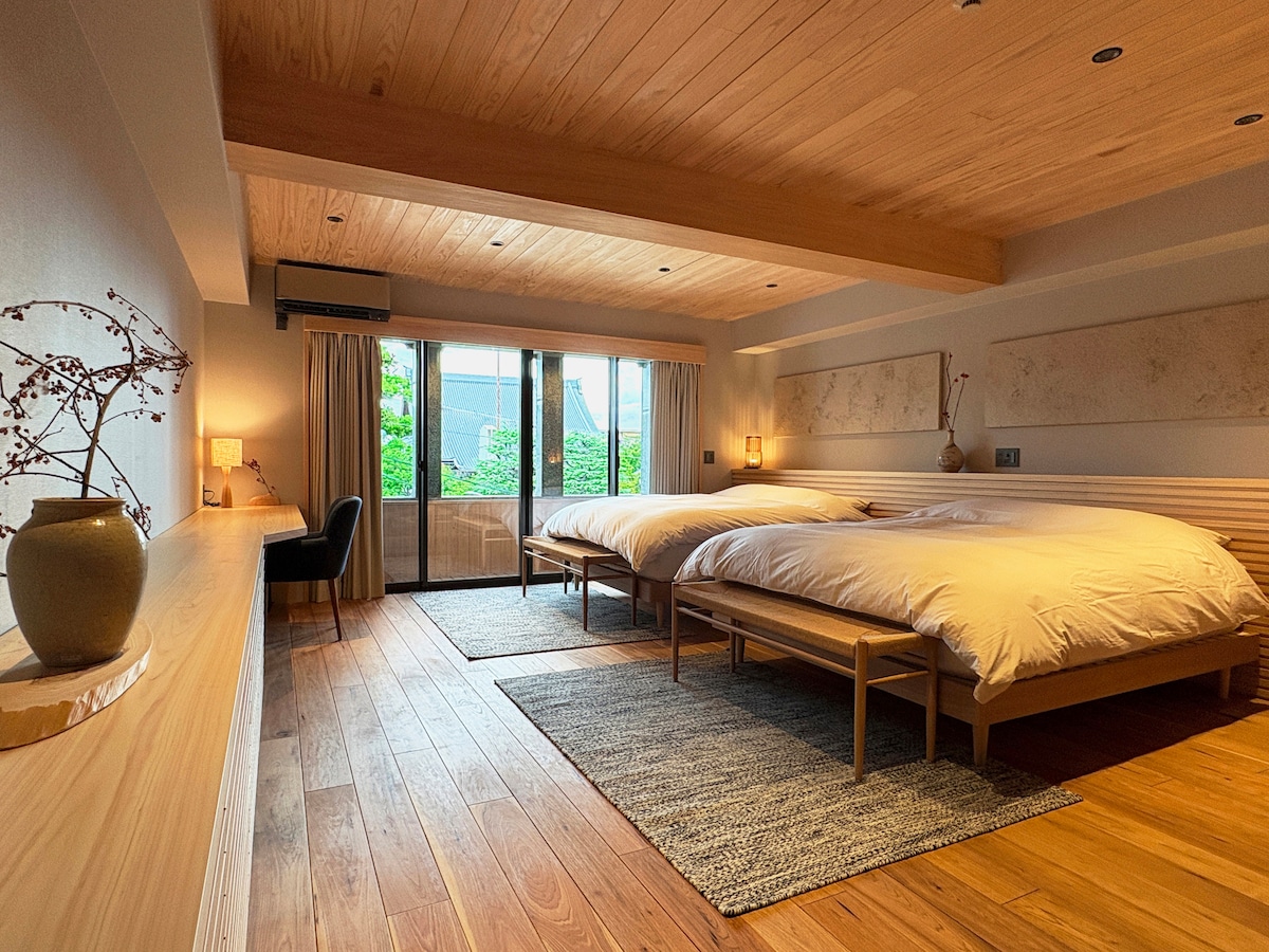 This exclusive loft is the entire 4th floor of Kitano Soho building with private elevator access and views of nearby temples and mountains. No details have been spared to ensure a unique and comfortable stay. The modern interior has been newly designed using locally sourced woods and materials. Come explore the quieter side of Kyoto in the Nishijin district where one can easily get lost walking through quaint neighborhoods and exploring local eateries, temples and parks.