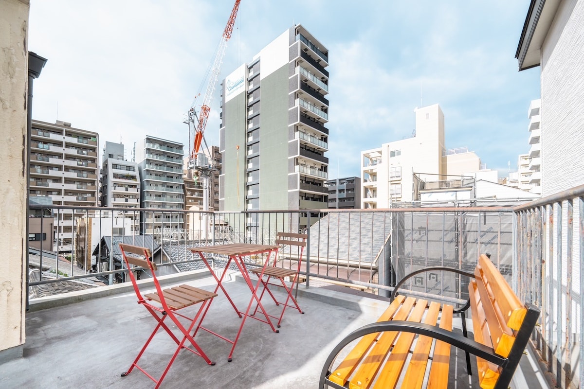 复古与现代结合的住宿!/步行5分钟到谷町六丁目站/步行20分钟到难波!/3DK布局85㎡/4张双人床