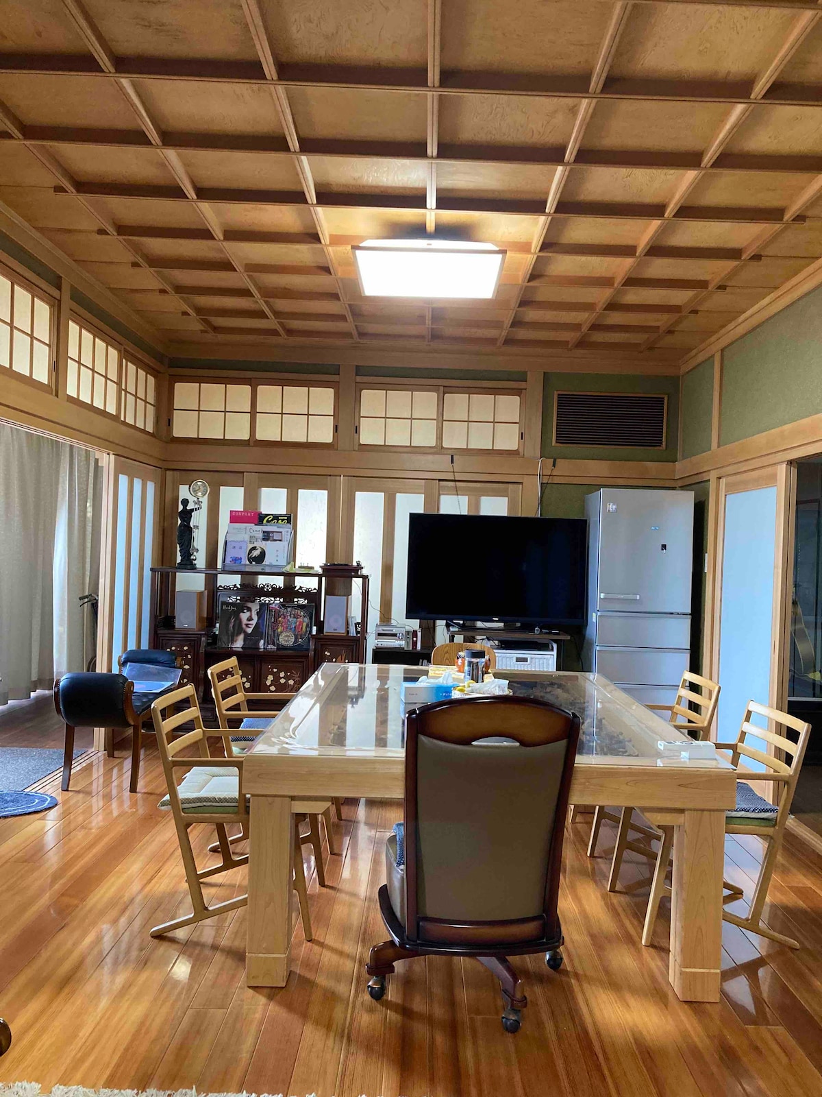 A spacious house with a traditional garden in the quiet countryside of Higashi-Hiroshima. You can cook our homemade rice and vegetable(depends on the season). Family-friendly recommended for a big group, couples, business trip(close to Hiroshima Univ). ・Free parking, 4 rental bikes ・Pet friendly (no charge) *please inform us on booking ・Free pick up from Higashihiroshima train station (only arrival) ・BBQ spot in the garden *ask us in advance ・Free WiFi
