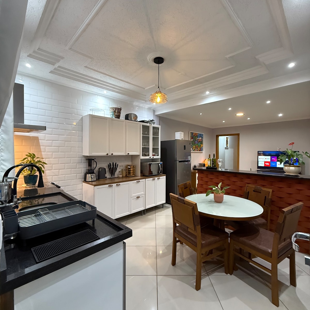 Espaço inteiro e privativo. Prezamos pelo conforto de nossos hóspedes oferecendo roupas de cama e banho, ar condicionado nos 2 quartos e sala, wifi e todos os utensílios necessários para que você se sinta em casa. A casa acomoda confortavelmente 5 hóspedes, mas pode acomodar até 7 usando o sofá cama na sala. Garagem segura com controle remoto para até 3 carros. Casa recém reformada, anexa a outra mas com entrada separada e total privacidade. Aceitamos pets sob consulta prévia.