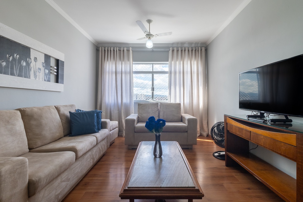 Apartamento completo 2 dormitórios, 1 banheiro, sala e cozinha, toalhas de banho e roupas de cama inclusas, cozinha completa, Wi-Fi. Fechadura eletrônica na porta para mais comodidade, cafeteira, geladeira, micro-ondas, bebedouro água gelada ou natural, ventiladores de teto em todos os ambientes com controle remoto, TV na Sala, TV do quarto de 65 polegadas para maratonar aquela série, quarto casal com guarda roupas planejado, quarto solteiro com beliche + colchão auxiliar. Acomoda até 5 pessoas.