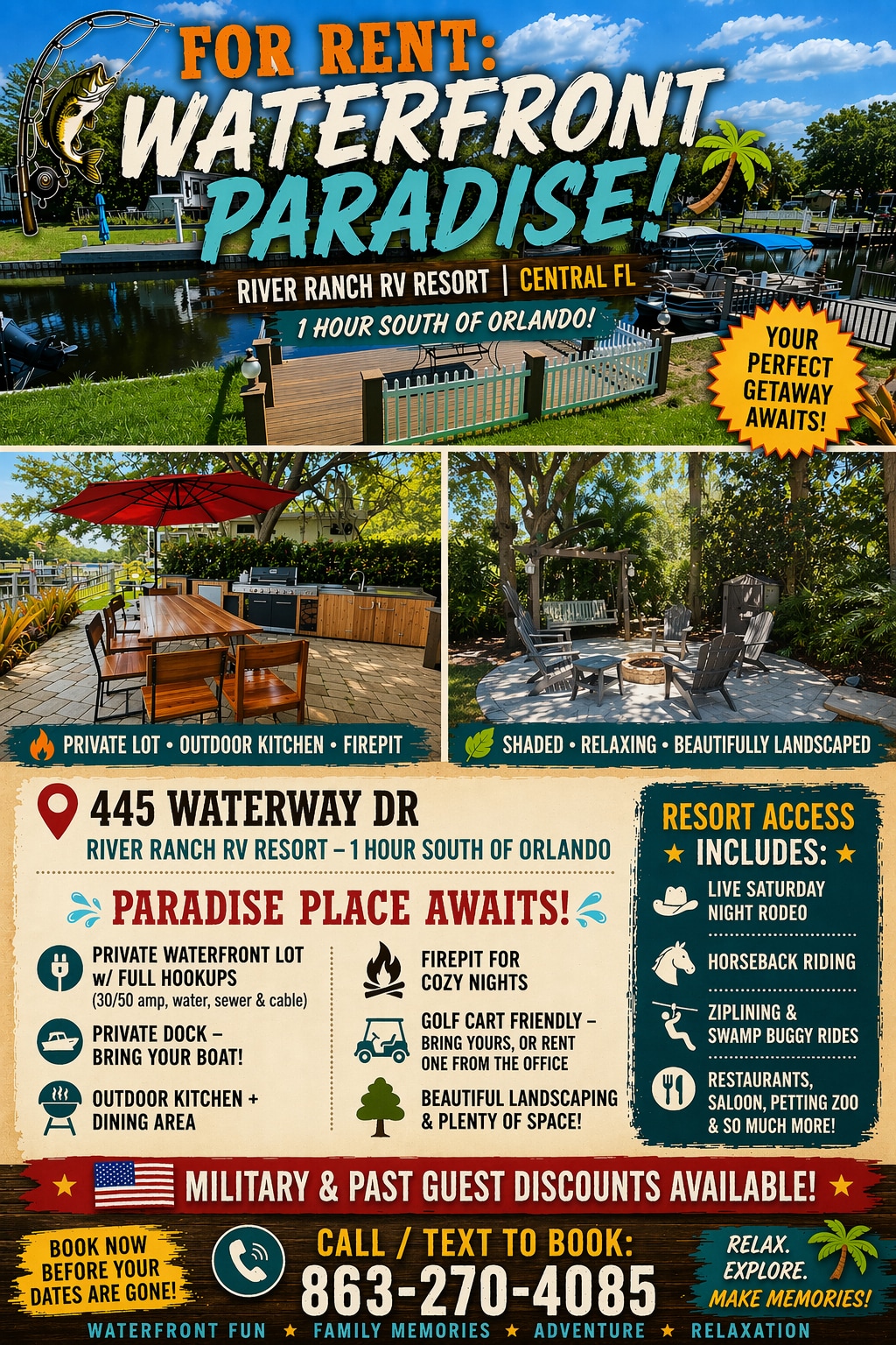 Welcome to Florida Lakefront Paradise! ⭐️ Breathtaking Sunsets ⭐️ Bass Fishing ⭐️ Reserved Boat Slip ⭐️ Fish Cleaning Station ⭐️ Boat Wash Station ⭐️ Marina with Ice/Gas ⭐️ Large Fire Pit Area ⭐️ Located on Kissimmee Chain of Lakes ⭐️ Smart TV's ⭐️ Screened Lakefront Back Patio ⭐️ High Speed Internet ⭐️ Spacious ⭐️ Balcony Facing the Lake ⭐️ 30 minutes to Lego Land ⭐️ 20 minutes to Bok Tower Gardens ⭐️ 1 hour to Disney World ⭐️ 18 minutes to Spook Hill ⭐️ 18 minutes to Kissimmee State Park