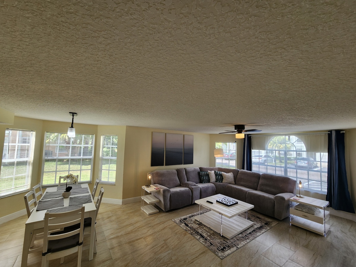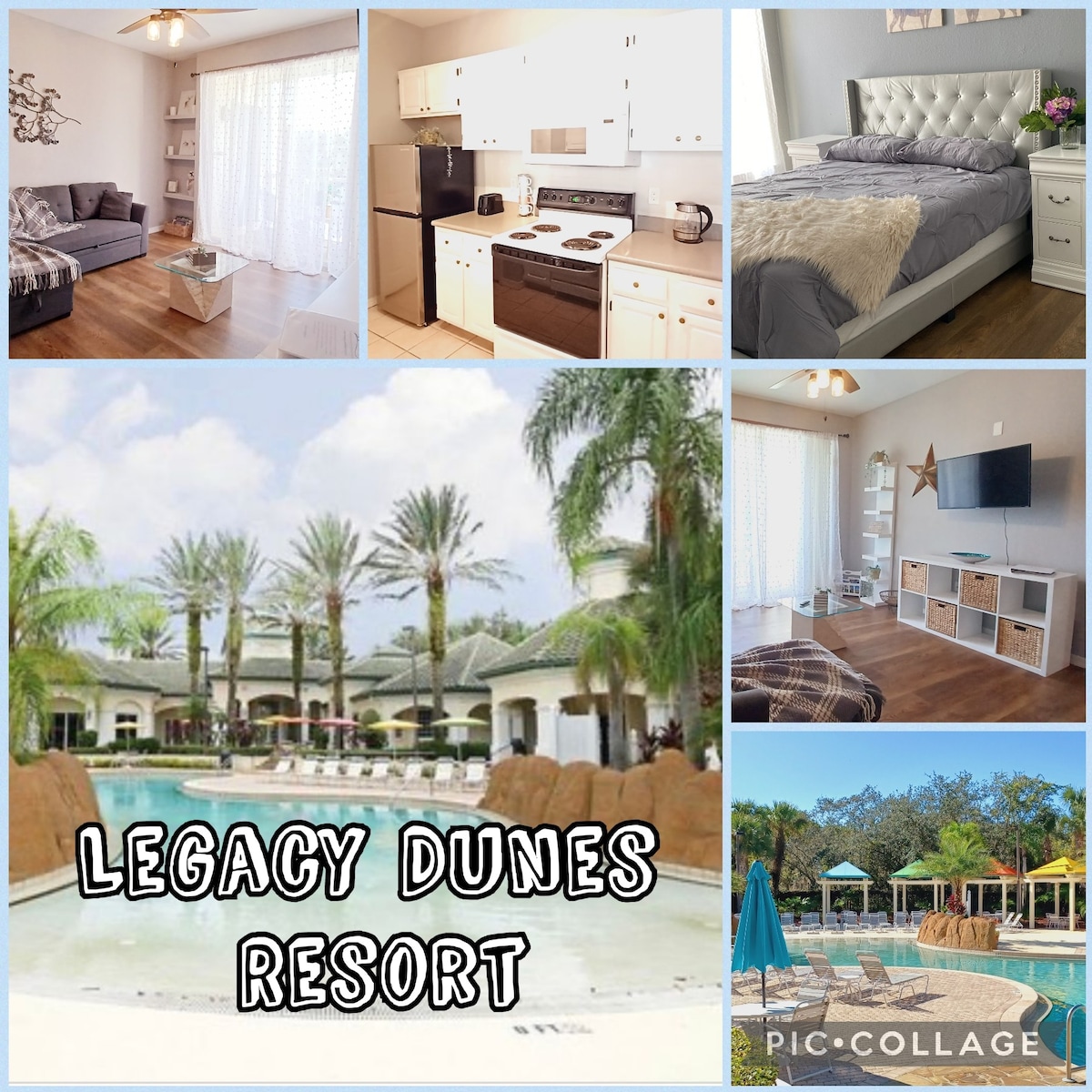 Discover our charming condo near Disney, nestled in a resort-style community. Enjoy complimentary parking and No resort fees!The beautiful clubhouse offers a game room, gathering areas, and a fitness center. Unwind by the serene heated pool or take advantage of the second pool. Engage in activities at the golf cage, tennis, basketball, and volleyball courts, or let kids play at the playground. Stroll along scenic walking trails that wind through landscaped areas and ponds for a tranquil retreat.
