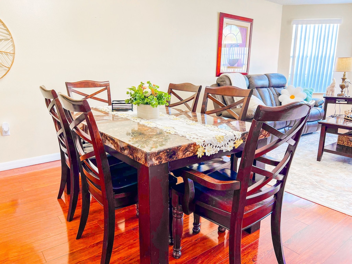 Escape to our lovely vacation villa, nestled in the vibrant heart of Orlando's premier golfing destination. Just a 7-mile drive from Disney attractions and 30 minutes from Orlando International Airport. Discover the awe-inspiring Reunion Resort, offering an array of delights. Indulge in delectable dining experiences, take a dip in sparkling pools, savor refreshing drinks at poolside bars and grill. Embark on an extraordinary getaway that exceeds all expectations. Book your stay with us today!