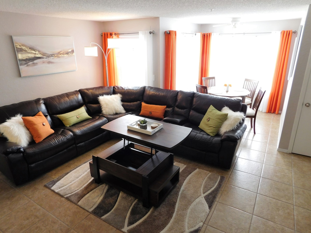 Relax in our Stylish & Modern 2Bed/2bath fully equipped apartment for up to 7 guests, located in the family friendly Storey Lake Resort. Minutes from DISNEY World Theme Parks in Orlando Florida. Close to UNIVERSAL STUDIOS & SEAWORLD. Enjoy our lake view from the balcony. Close to restaurants, supermarkets, outlet malls & retail stores. Great amenities: Heated Pools, Kids Splash Zone, Water Slides, Lazy River, Gym, Mini Golf, Kayak, Tiki Bar & Ice Cream Shop, security guard!
