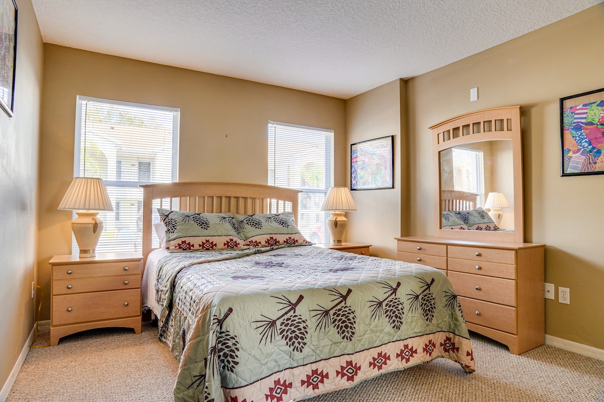 Experience magic at our Fantasy World Villas retreat, minutes from Disney, Universal & Sea World. This modern 2-bed villa boasts a Mickey-themed room, king-size bed in the master, full kitchen, laundry, private patio, free Wi-Fi & parking. Resort amenities include heated pools, hot tubs, lazy river, water slides, tiki bar, gym, playground, sports courts, and more. Enjoy nearby restaurants & grocery stores. Create unforgettable memories in this captivating home away from home! Book Now!