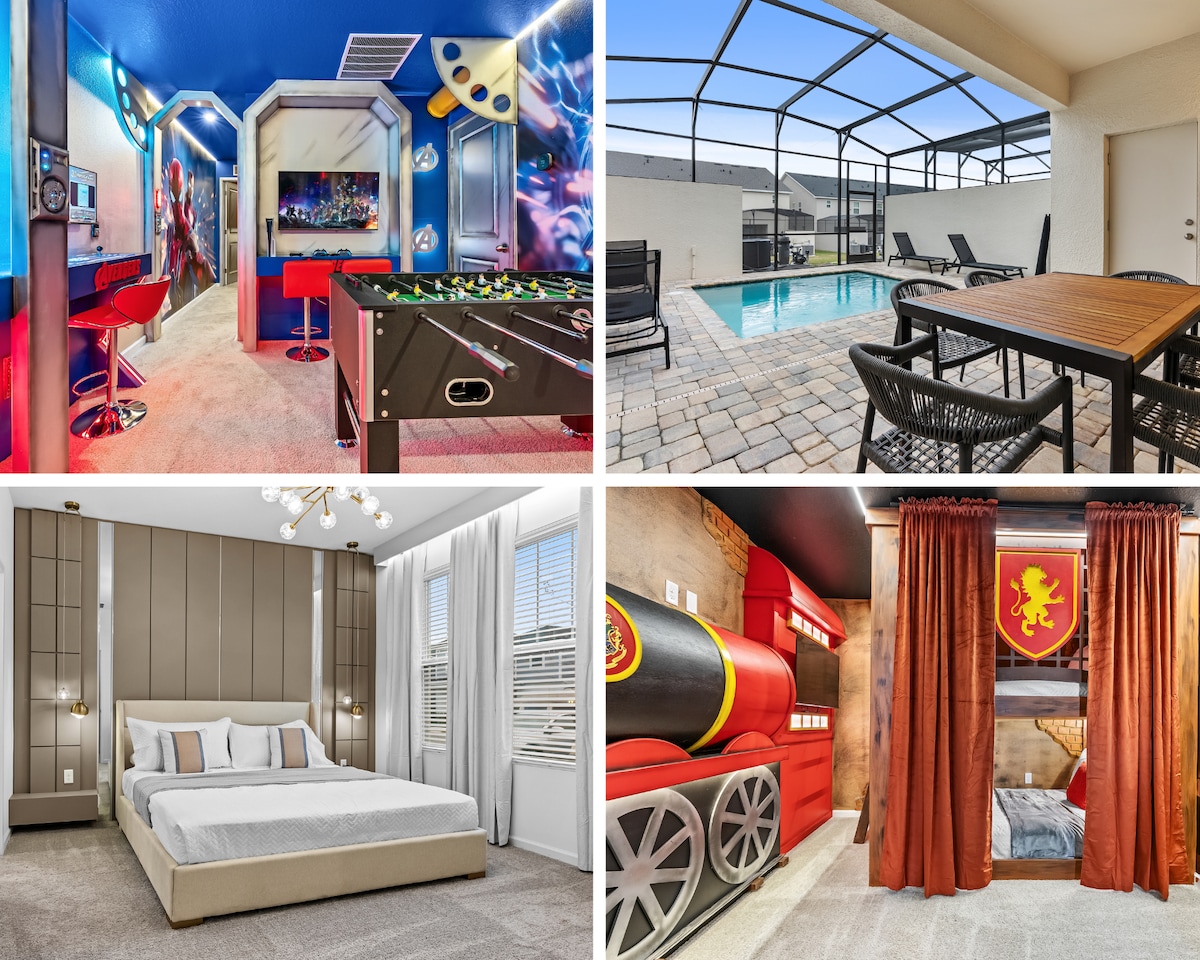 靠近迪士尼|加热泳池、特大号床、街机