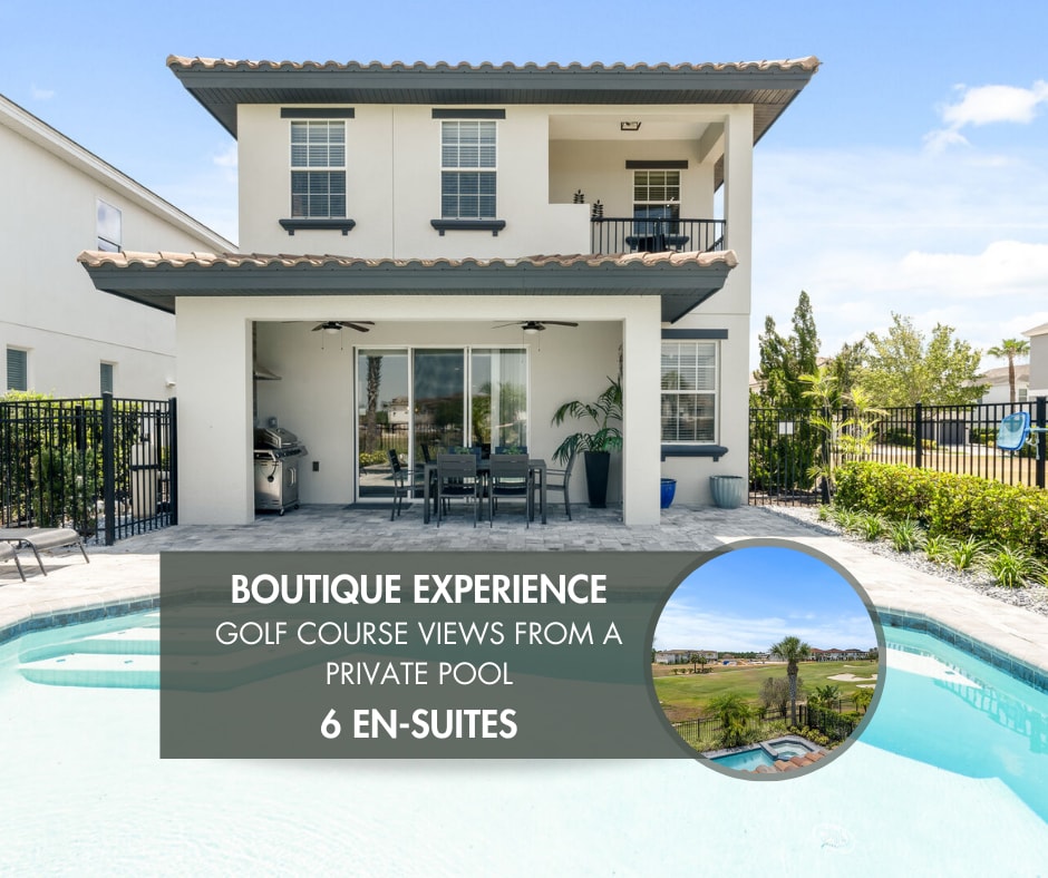 Spend a unique boutique experience, just minutes from Walt Disney World theme parks, in this stylish 6-bedroom, 6-bathroom home that can comfortably accommodate 12 people. The house features a private pool, an Al fresco dining area with a BBQ and a lovely view to the golf court at Reunion Resort.