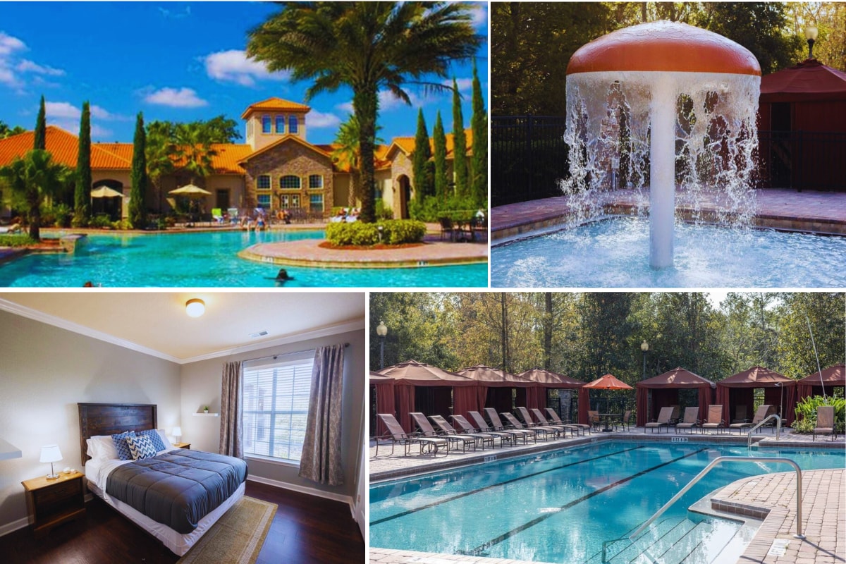 Have fun with the whole family at this stylish place: themed bedrooms and a peaceful feeling. With Disney just 5 miles away and Universal Studios 15-20 minutes away, the resort offers endless fun. Storey Lake Resort also has many nearby shopping malls and dining options. From its resort-style pool, splash pad, and watersides to its clubhouse, poolside bars, fitness center, and lake-based activities, Storey Lake is the happy ending to your vacation rental search.