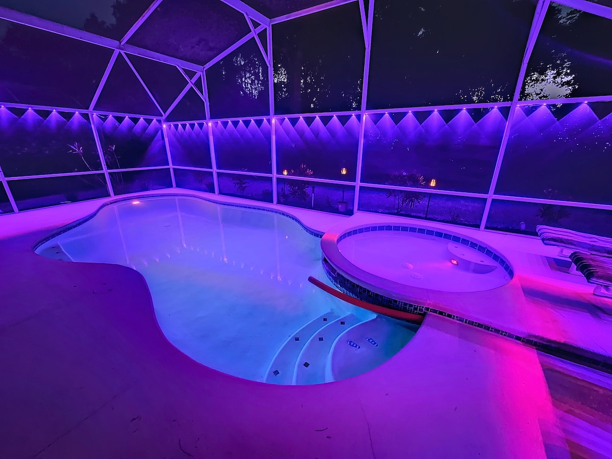 Make memories to last a lifetime in our luxurious seven-bedroom home (sleeps 21) at Orlando's premier vacation community. Enjoy your own Batman cave game room, private pool (heated at no extra charge*), and hot tub. Our 100% Five-Star rating from previous guests and our generous cancellation policy means you can book with confidence. Only 15 minutes to Disney and a short walk to a fabulous resort clubhouse with free access to a lavish pool, kids waterpark, restaurant, playground, gym, and more!