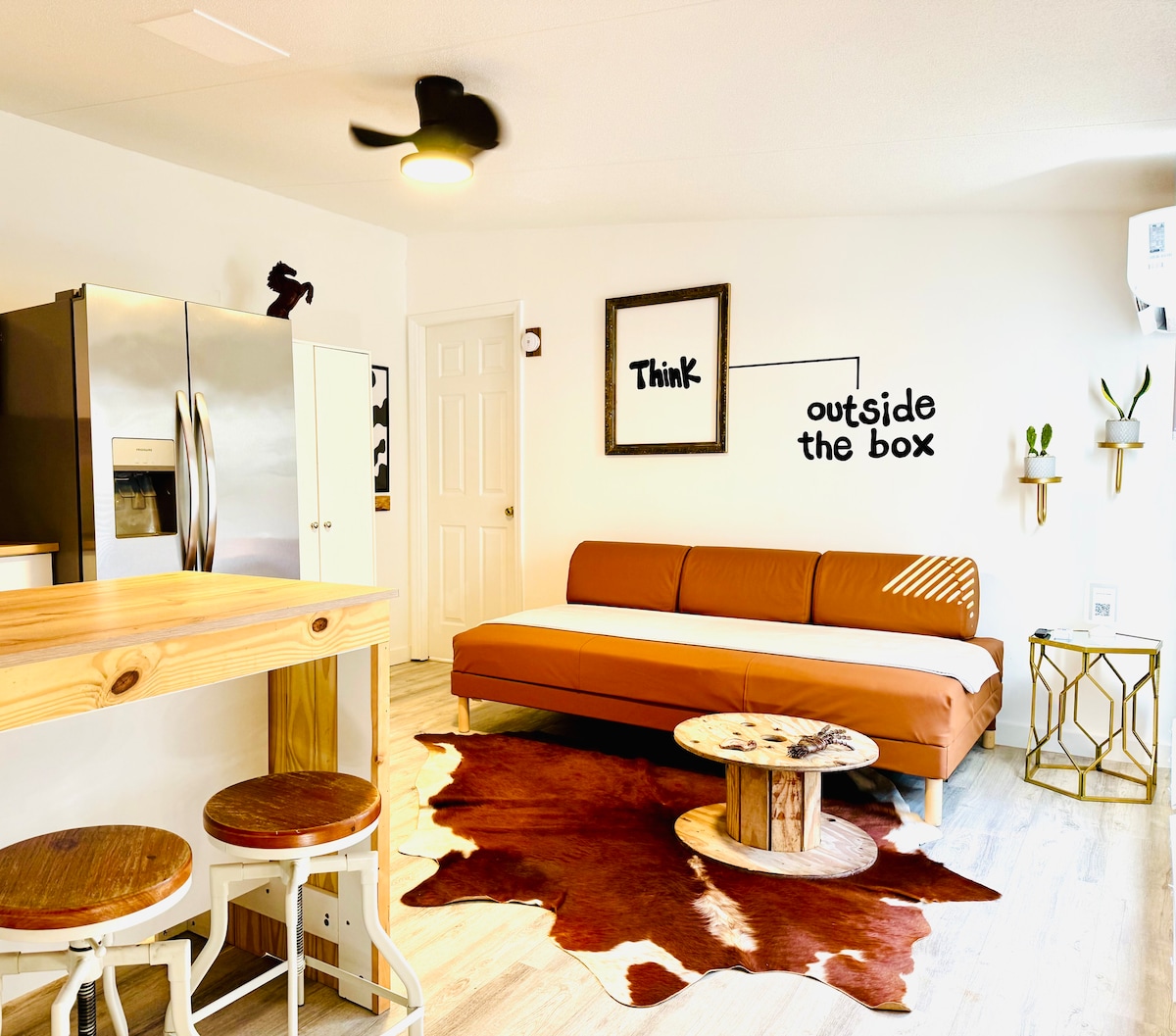 Brand new private home in Mill Creek RV park. 1 bedroom home with queen bed and additional pull out sofa. Play yard/crib available for 5th guest. Full kitchen, washer/dryer in home. Enjoy a central location backing onto a green space with pond for peaceful privacy on the back deck. Full access to all Mill creek amenities ( pool, gym, playground, corn hole, pickle ball, putting green) 2 smart TV’s in unit 1 mile to Walmart 15 mile to Disney World & Universal 13 mile to Orlando airport
