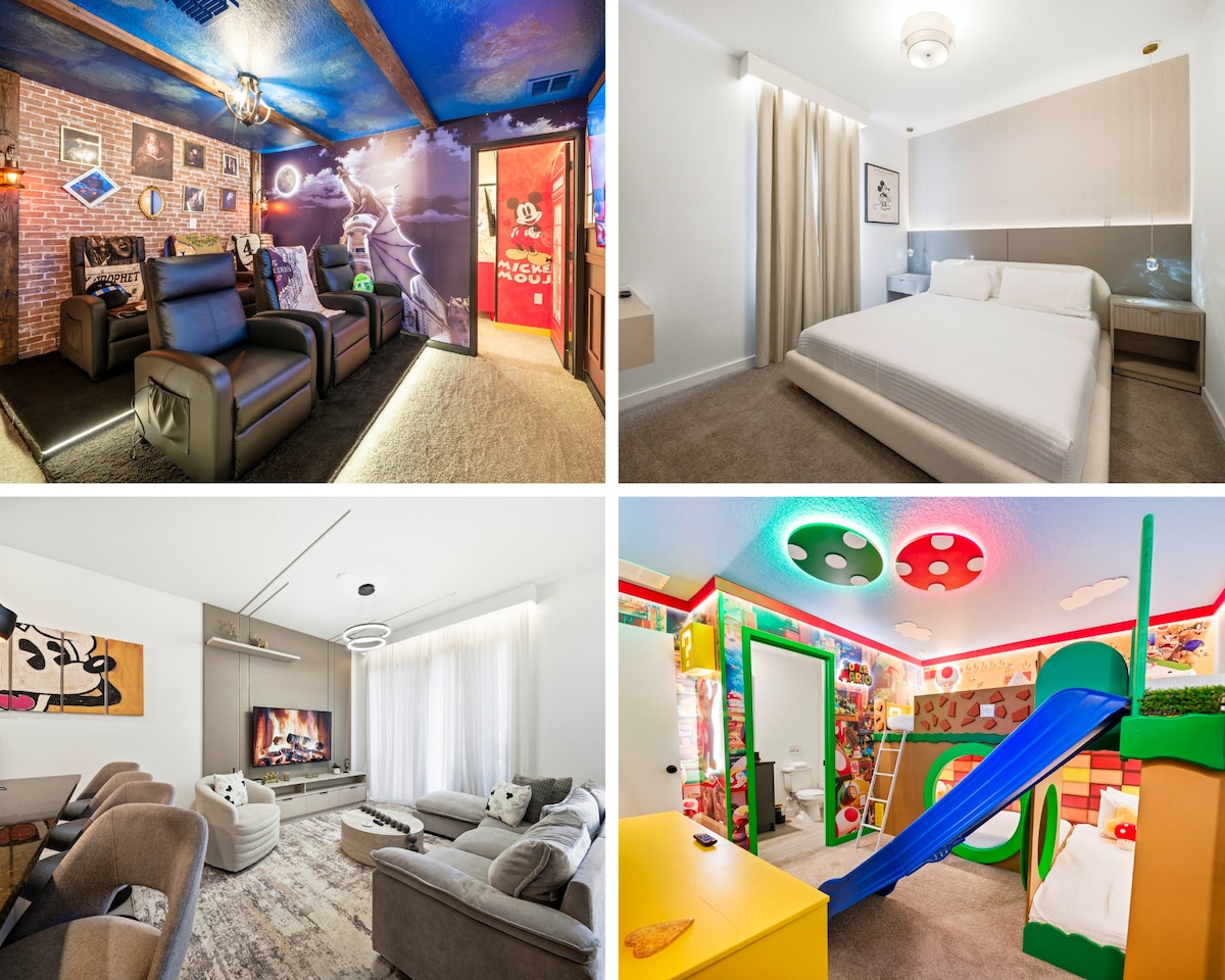 The perfect balance of STYLISH DESIGN, LUXURIOUS COMFORT, & ENDLESS ENTERTAINMENT, beautifully situated with stunning views in the sprawling 3.5 square mile Reunion Resort. You will have your own private pool, spillover spa, STAR WARS cinema-game room with pinball, classic arcade games, and karaoke, MARVEL kids room with tube slide and double bunks, the latest Xbox Series S, a sprawling 2000 ft2 pool deck, fire pit, and even a HARRY POTTER cupboard hidden under the stairs, minutes to Disney.