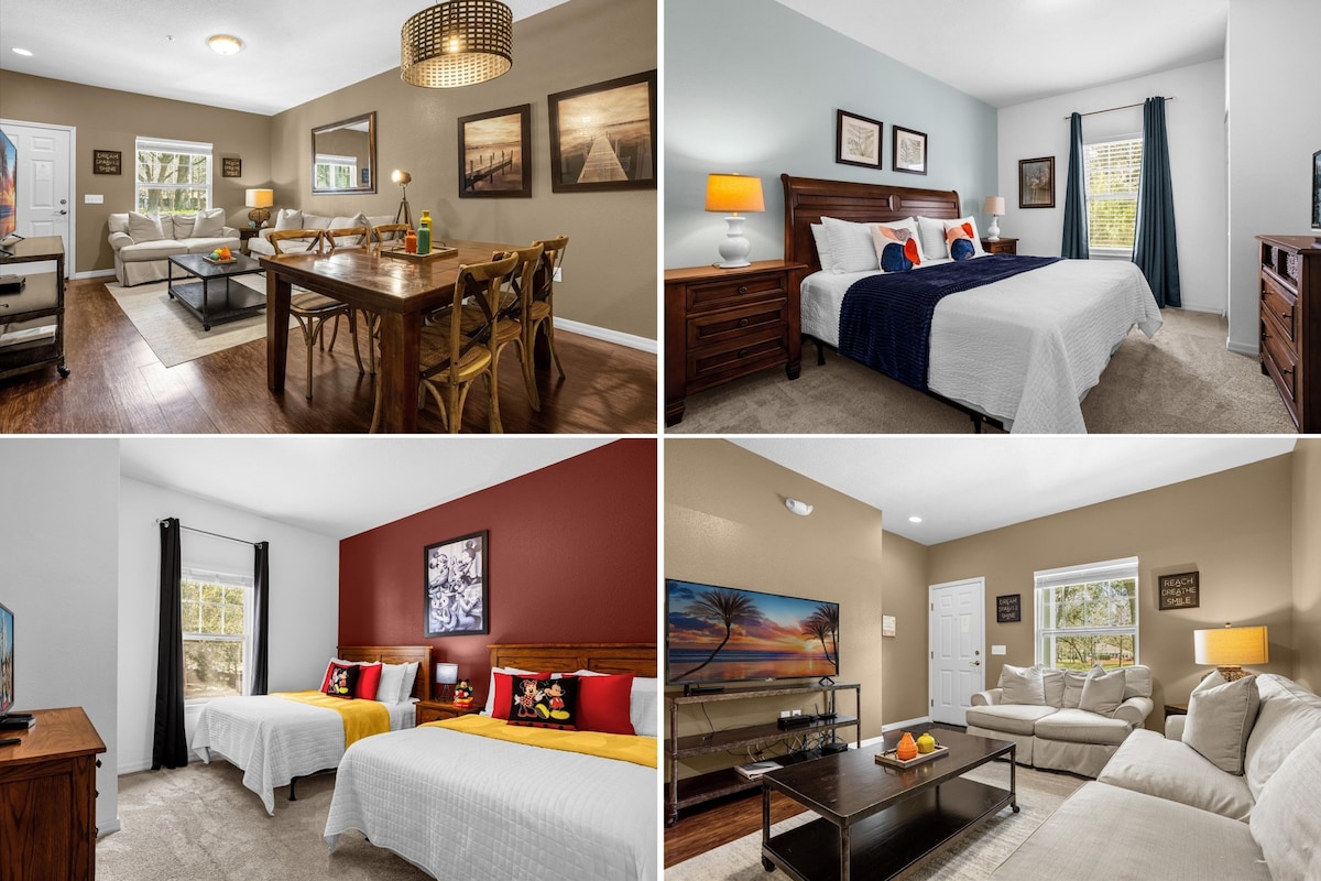 Trusted by over 400 guests with a 4.95 rating. Quiet pool home designed for easy, stress free stays. Spotless, clutter free, and exactly as described. Fast WiFi and simple self check in. 10 minutes to Disney and major attractions. “Spotless, easy check in, and perfect location.” “Exactly as described. Would stay again.” 2-bedroom townhouse in the gated Regal Oaks Resort Private hot tub overlooking a peaceful lake, ll Resort-style amenities like pools, water slides, a fitness center.