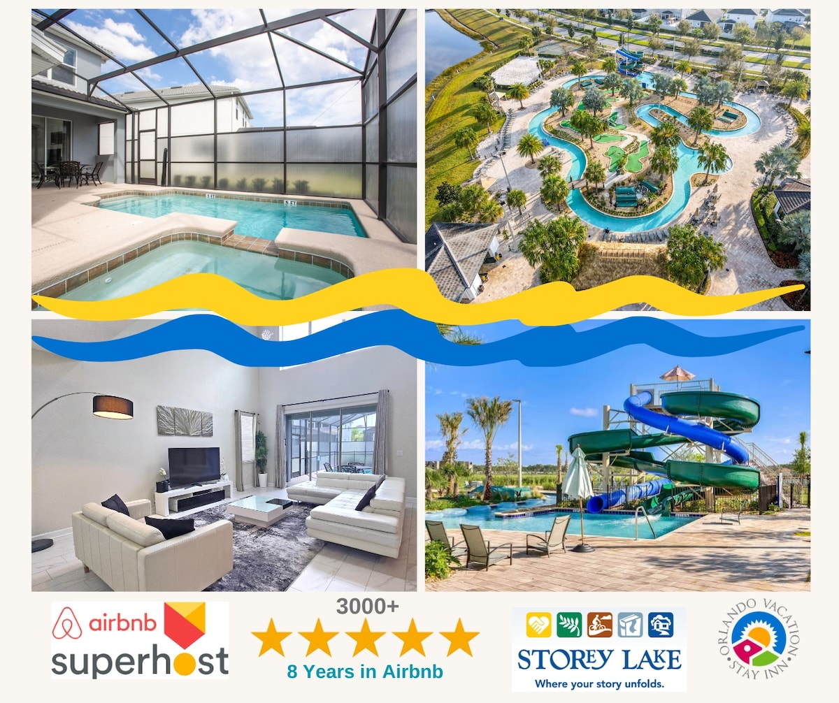 Minutes from Disney World Orlando Florida, Modern & Stylish 2bed/2bath fully equipped apartment for up to 6 guests, located in the family friendly Storey Lake Resort. FREE Clubhouse & WATERPARK amenities: Heated Pool, Hot Tub, Kids Splash Zone, Water Slides, Lazy River, Gym, Tiki Bar, Ice Cream Shop & more. The apt is located: 10 min drive to DISNEY, 25 min to UNIVERSAL STUDIOS, 18 min to SEA WORLD. FREE Parking. FREE Waterpark. No extra FEES. Gated Resort with Security 24/7 & Self check-in!