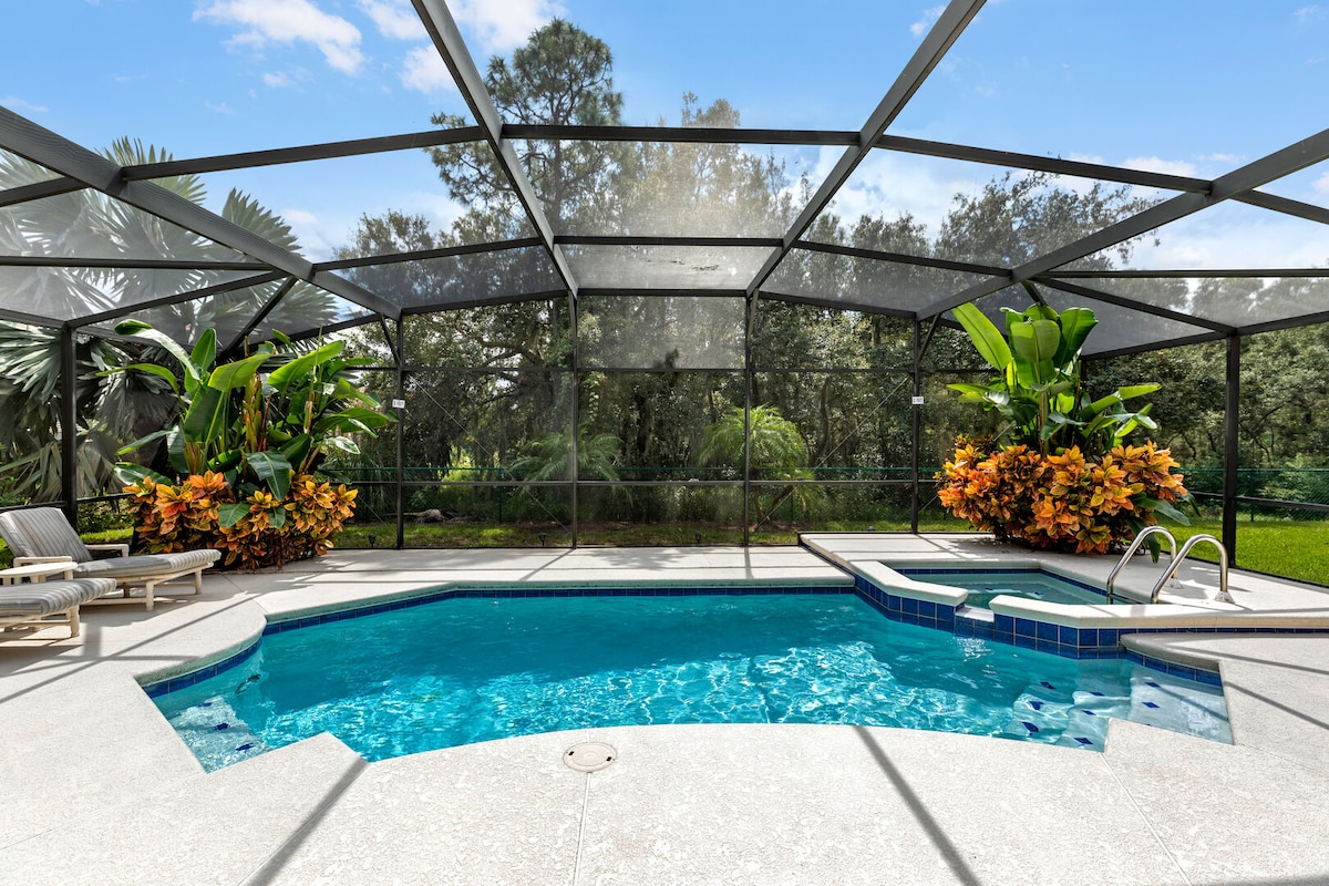 Enjoy the elegance of this peaceful and centrally-located place just minutes away from Disney World, Sea World, Universal Studios & all other fun attractions of Florida. The house is tucked away in the tranquil zone next to a beautiful quiet pond that you can enjoy every evening after a busy day playing. Enjoy the pool with the sun all day and a private outdoor home theatre at night. We have a grill for your full enjoyment too. Just an hour away from sandy beaches.