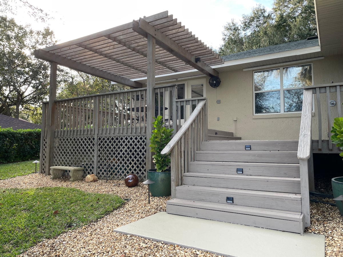 This prime location is a 30 min drive to the airport, a 35-45 min drive west to theme and gator parks (Disney, Universal, etc). A 45-60 min drive east takes you to the stunning Atlantic beaches and the Space Coast. After your adventures, recharge at a serene 12-acre nature retreat that boasts of cypress wood walls and vaulted ceilings. Relax in the pool and transform the family room into your own movie theater! **Unapproved parties/events are not allowed, FOR POOL INFO EXPAND ADDL. HOUSE RULES.