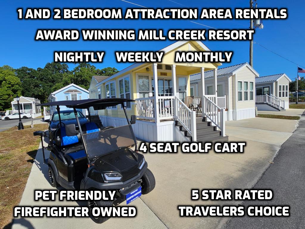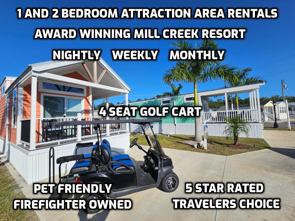 Our Tiny House in Mill Creek RV Resort is minutes away from Disney, Universal, Sea World & most area attractions. Our cozy cottage has a private bedroom, full kitchen, large island, living room, bathroom, free washer/dryer, and the perfect front porch. There is a private drive and free parking. The resort is peaceful with plenty of amenities! We have four tiny house cottages - please check us out on our profile page — http://airbnb.com/users/132701751/listings