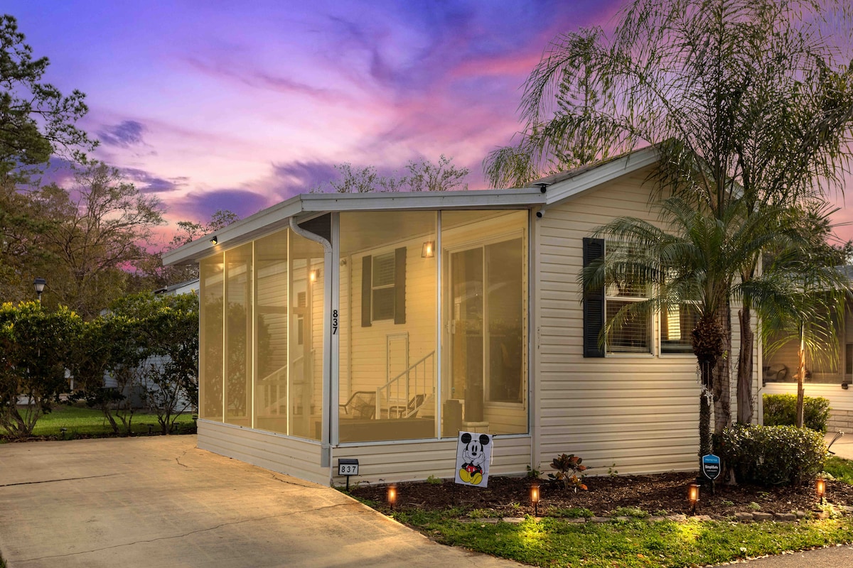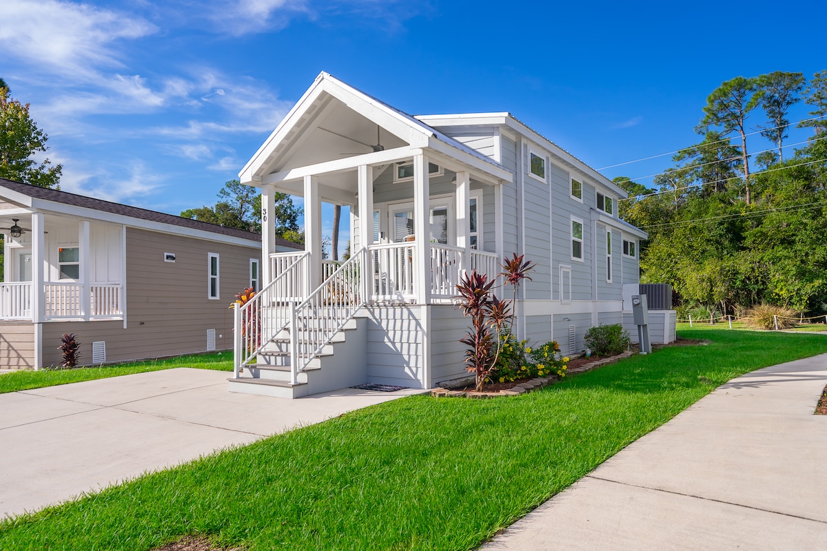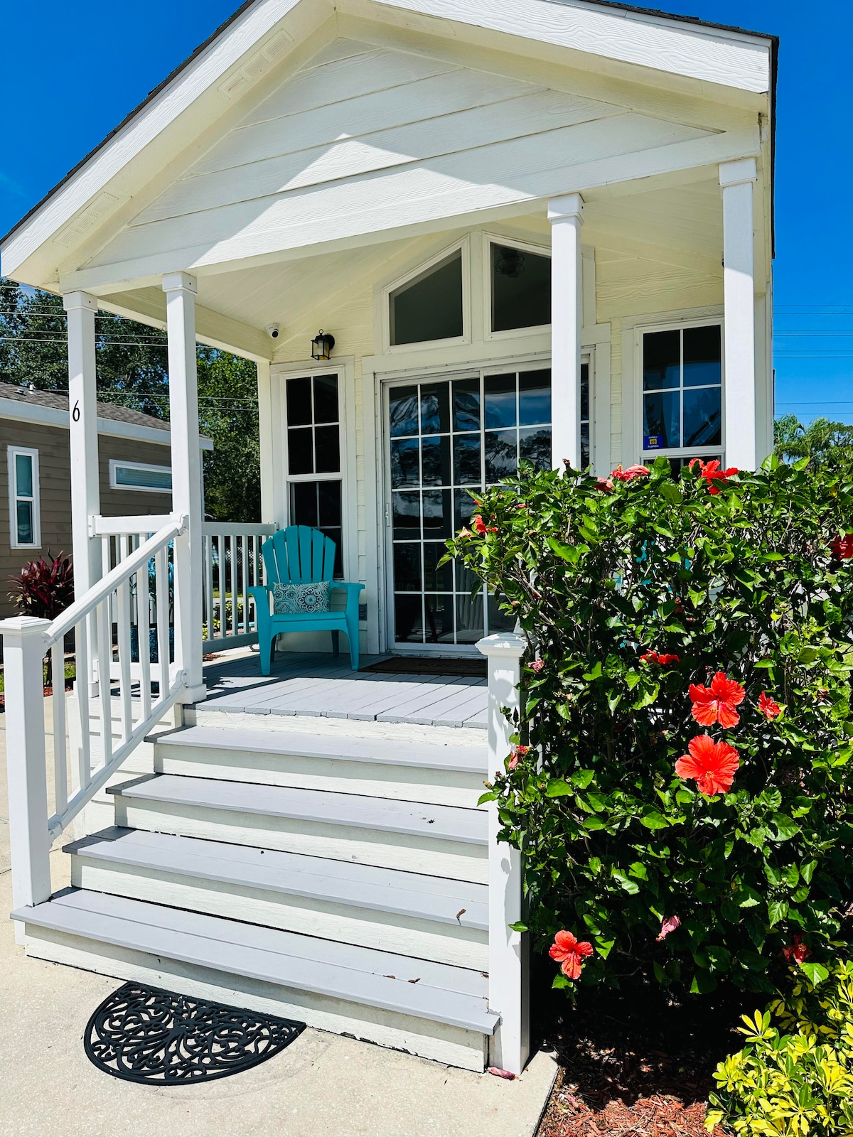 Experience tiny house living in the heart Florida!! This tiny house was recently re-decorated a with a fun, Florida vibe. It has everything you need to enjoy your vacation - complete with a full kitchen and a washer and dryer. Relax on your own private porch or take a dip in the heated saltwater pool after a long day at the parks. This tiny house is located in the Mill Creek RV resort and is conveniently located close to parks shopping and airport!!