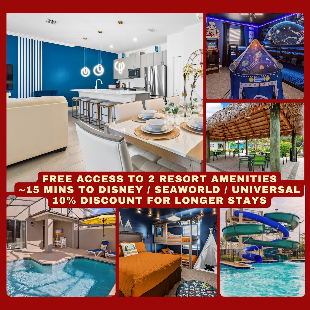 平均评分 4.82 分(满分 5 分),共 150 条评价主题泳池房源,距离迪士尼2英里
