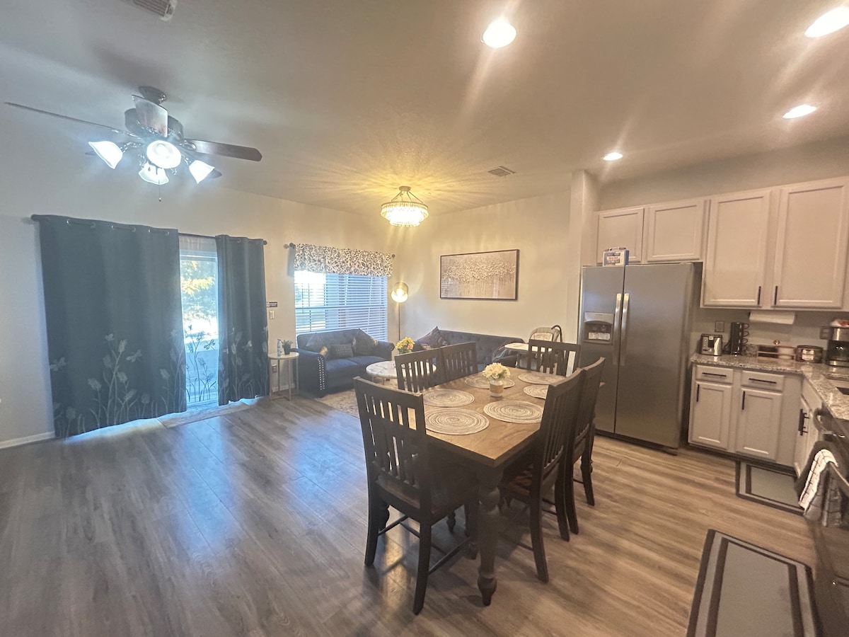 Our Modern and Contemporary townhouse is located at Regal Oaks Resort, an exclusive gated resort style condo very close to the main attractions. Fully equipped, comfortable living room with a sofa bed, an amazing dining area, and a private oversized screened patio with hot tub. This beautiful townhouse provides 2 bedrooms, 2 en-suite bathrooms, and a half-bathroom. Also, an incredible open concept kitchen with wood cabinets, granite counter, and a stainless appliances.