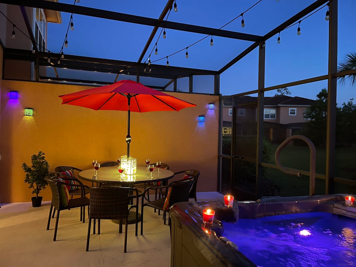 Our gated-community townhouse offers a resort feeling with all the comforts of home, peaceful & quiet, yet central to Disney, Old Town, and all major attractions. After an exciting family day, relax in your private patio hot tub and enjoy the nature, or soak up some sun poolside at the resort. Fun for adults and kids of all ages! Also enjoy the resort tennis courts, pool table, gym, restaurant, and poolside snack bar! NO RESORT FEES! FREE PARKING!