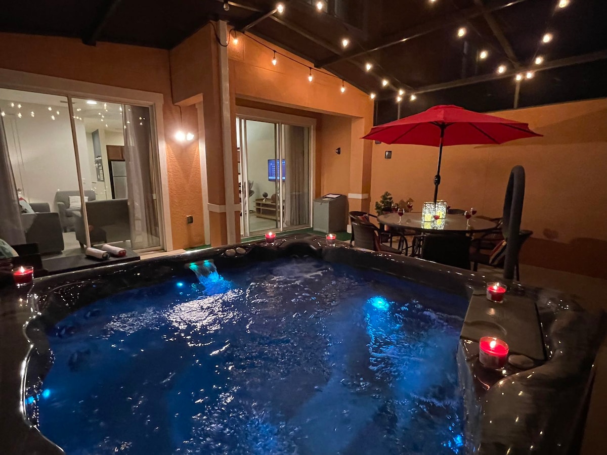 Welcome! This beautiful 2bd/2.5 bath townhouse is just 15 minutes from Disney! Our prime location is also close to other central Florida attractions such as Universal Studios and SeaWorld! There is a private hot tub in the backyard patio to enjoy after a long day at the parks! We also provide travel-sized toiletries, fresh towels, laundry supplies, etc., so you can pack light! We know that traveling can be tiring so please allow us to offer you an amazing home away from home. Happy travels!