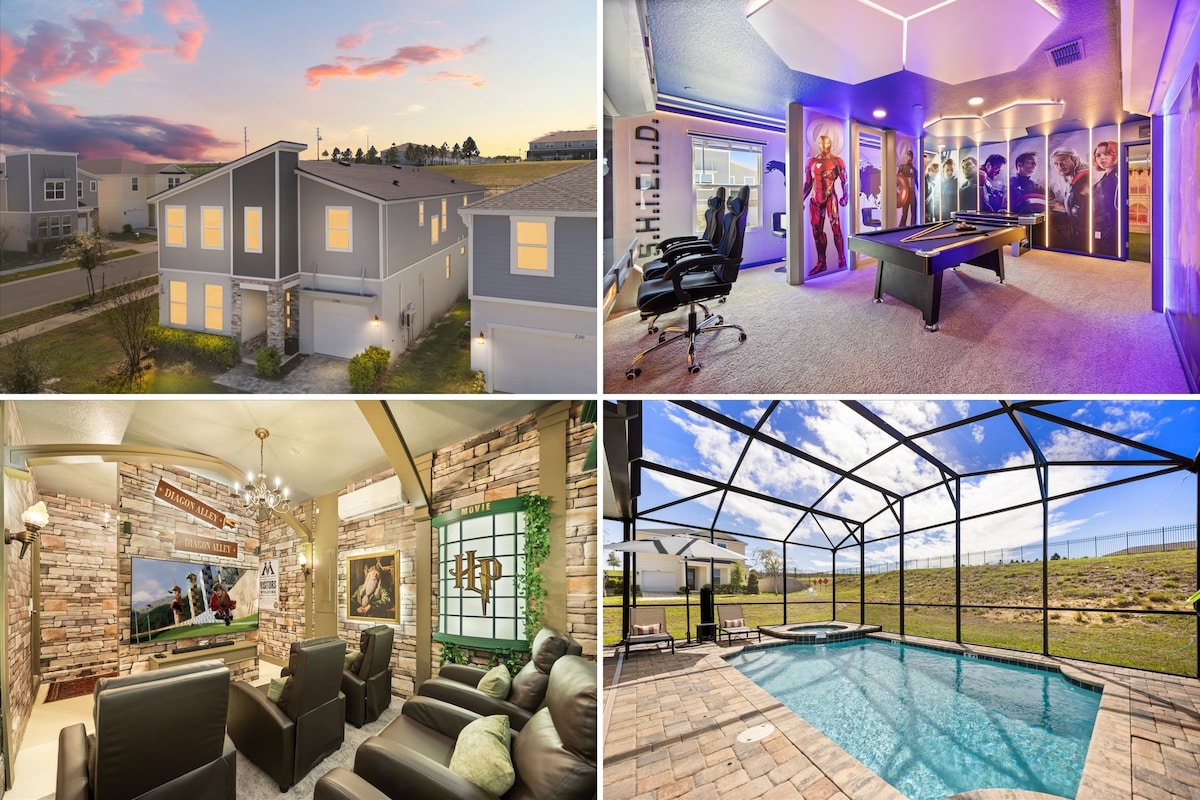 The perfect balance of STYLISH DESIGN, LUXURIOUS COMFORT, & ENDLESS ENTERTAINMENT, beautifully situated with stunning views in the sprawling 3.5 square mile Reunion Resort. You will have your own private pool, spillover spa, STAR WARS cinema-game room with pinball, classic arcade games, and karaoke, MARVEL kids room with tube slide and double bunks, the latest Xbox Series S, a sprawling 2000 ft2 pool deck, fire pit, and even a HARRY POTTER cupboard hidden under the stairs, minutes to Disney.