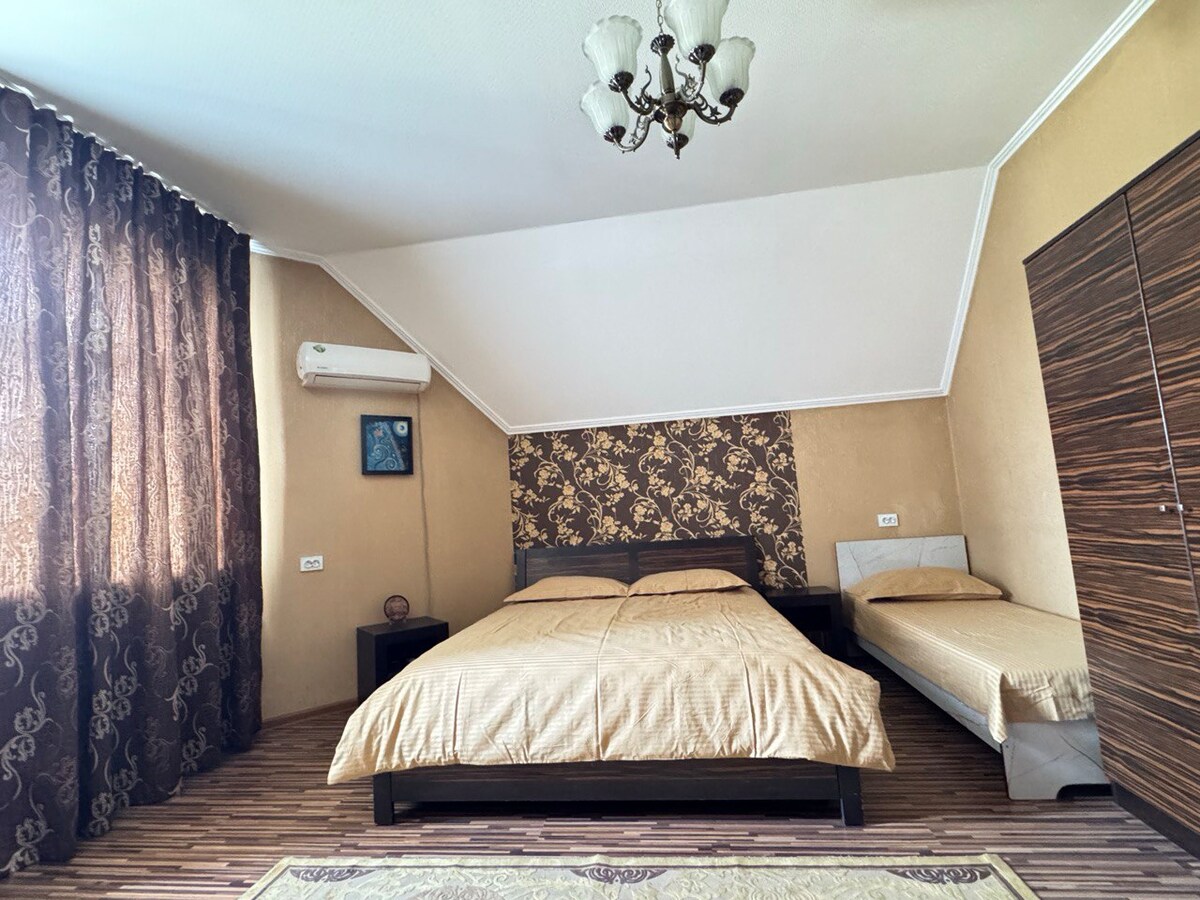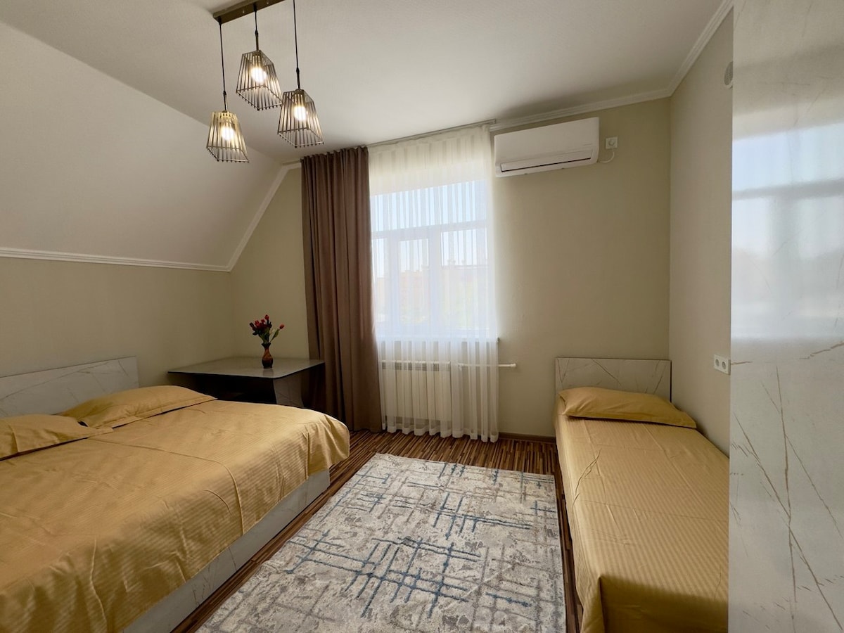 This cozy room offers a peaceful stay with private bathroom, comfortable beds, and access to shared kitchen and garden. Just 15 minutes from the heart of Osh. - Surrounded by nature - Clean linens and towels - Free parking - Fast Wi-Fi 🍽 Traditional Kyrgyz breakfast (on request) Whether you're a solo traveler, a small group or a digital nomad, you'll enjoy local hospitality and calm atmosphere. this peaceful place to stay.