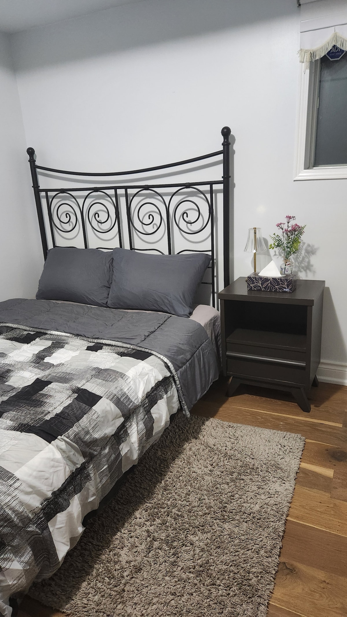 This stylish place to stay is perfect for individuals, professional workers, students or couples trips. Located in a safe, quiet neighborhood in Oshawa .Walking distance to the bus stops Close to Ontario Tech University, grocery stores & more Features: • Private entrance • Fully furnished (includes dining table, sofa set, queen bed, 55" TV, fridge, microwave, toaster, etc.) • Private laundry No pets | No smoking