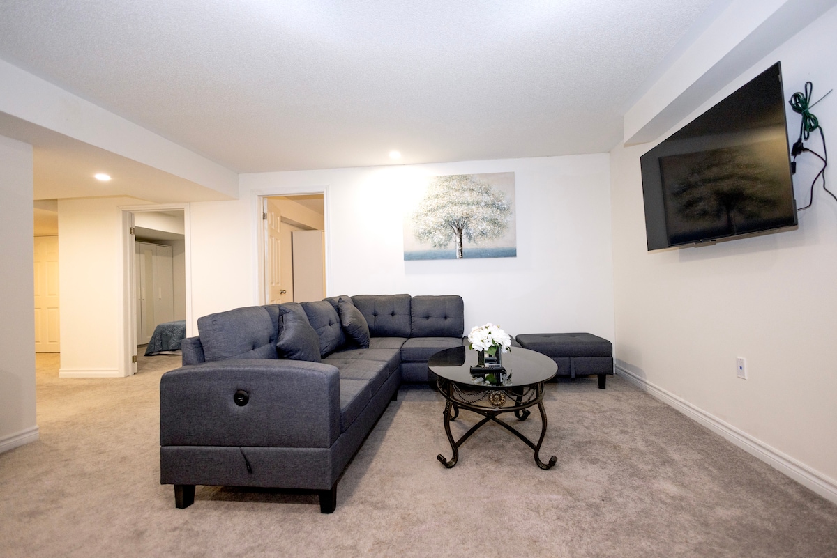 Cozy and private 1-bed studio, ideal for short or extended stays, well-equipped for convenience and relaxation. ✔︎ Spacious private suite with full Bath ✔︎ 55-inch 4K TV with Netflix, Prime, Crave, Fibe TV, YouTube, etc ✔︎ Super Fast WiFi ✔︎ Self check-in ✔︎ Workstation ✔︎ 5 mins drive - 401, Downtown, Malls, Grocery, Pharmacy, Restaurants, Cineplex. ✔︎ Free Parking on driveway ✔︎ In Unit Washer & Dryer ✔︎ Kitchenette - Fridge, Microwave, Kettle, Toaster, Coffee maker, utensils & supplies.