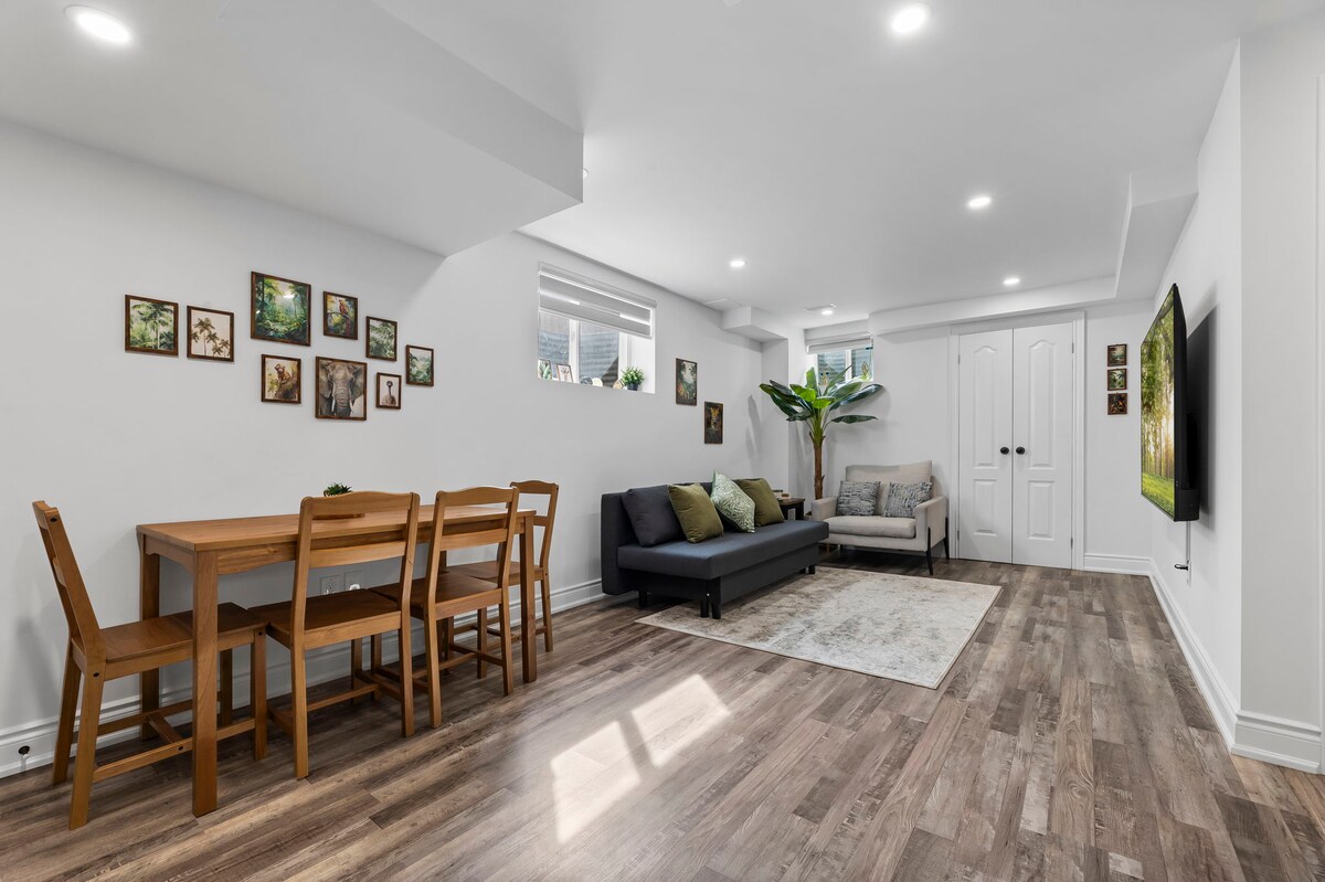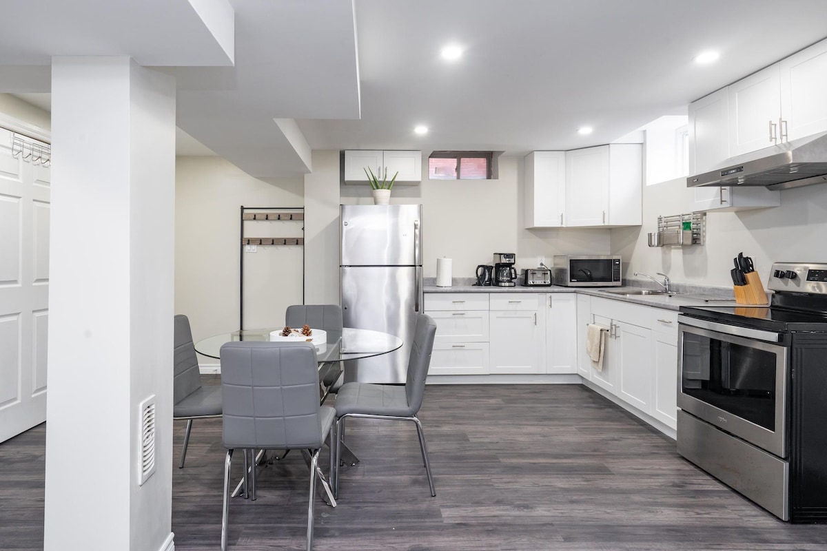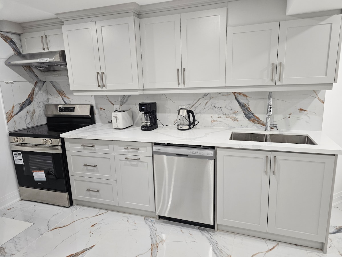 ★ "Very nice apartment! Clean, spacious, and modern'' ★ ☞ Fully Private unit!!! ☞ Fully equipped kitchen!!!! With all required machines and pots ☞ Extended Kitchen Island ☞ All rooms w/ queen + Sheets and Duvet !!!!!! ☞ 55” smart Samsung TV w/ Netflix + Samsung sound bar with Sub ☞ Central AC + Heating ☞ Onsite washer + dryer ☞ Parking → 1 on the driveway!!!! ☞ 700mbps wifi ☞ Open Concept 5 mins → Thermëa spa village 12 mins → Whitby and Ajax GO Station