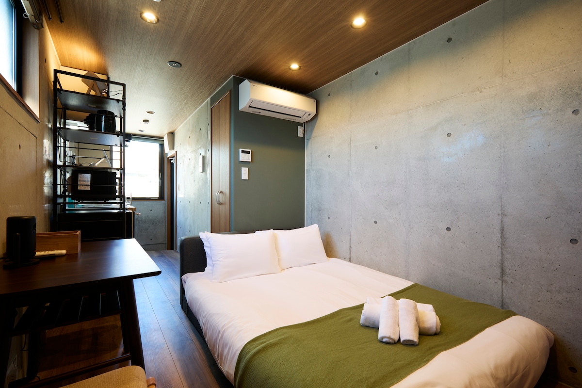 本館位於日本最高建築、東京最具代表性的觀光地標「東京晴空塔/押上站」步行僅 1 分鐘的絕佳位置,是一間昭和復古風格且自助入住的公寓式HOTEL. 🏡 26㎡ 雙人大床房|4樓|有電梯|有陽台 ・雙人床 1 張(160cm × 200cm) ・餐桌 1 張 ・餐椅 1 組 ◆ 品牌家電齊全: 免費Wi-Fi、冰箱、電磁爐、電鍋、微波爐、電熱水壺、洗衣機、吹風機、智慧型免治馬桶、冷暖空調、延長線、熱水器等,一應俱全,滿足長短期住宿需求. ◆ 生活備品完善: 洗髮精、潤髮乳、沐浴乳、洗手乳、洗碗精、洗衣精、毛巾、浴巾、室內拖鞋、牙刷牙膏、衛生紙、抽取式面紙、礦泉水、水杯等⋯ ◆ 獨立空間: 臥室、客廳、衣櫃、玄關、鞋櫃、廚房、衛生間、附浴缸的淋浴空間、洗手台、餐廳及專屬陽台⋯ 另提供全套簡易餐具與廚具. ◆ 乾淨安心: 由日本專業清潔團隊進行全面清掃,並依照星級飯店標準配置與更換床上用品,確保每位旅客皆能享有乾淨、舒適的住宿體驗.