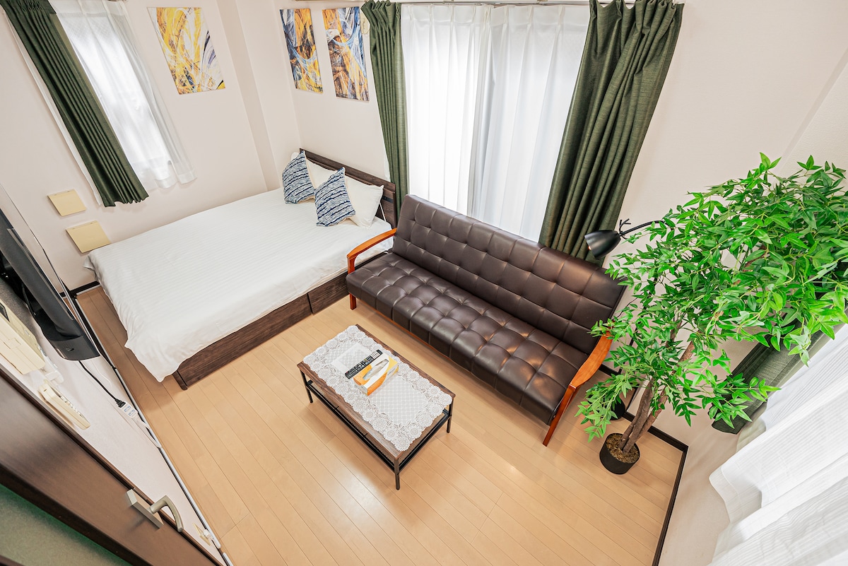 东京・墨田区|安静街角的四楼雅致房源|洋式风格/日式榻榻米结合体|近浅草寺・晴空塔 在喧嚣城市的一隅,藏着一间静谧的小屋 走进这间位于四楼的日式与洋式结合的公寓,仿佛回到了属于自己的小小世界。 房间格局 ・在这间雅致的401号房,卧室独具特色,满足多样居住需求 配备两张宽1.4m长2.0m的双人床,柔软舒适,清新现代的布置让人一进门倍感轻松 ·明亮舒适的空间配有可打开式折叠沙发床,沙发床尺寸宽1.4米长2米 沙发床的布置将根据入住人数进行调整:如入住人数较多,我们会提前准备好相应数量的被褥;如人数较少,默认为沙发,作为休闲空间使用。为了更好地为您准备,请在预订时提前告知实际入住人数。感谢您的配合与理解。 当您们旅行了一天回来,躺在床上或者沙发里,边品味美酒边欣赏晴空塔的夜景,实在是身心的大放松。 ・开放式厨房,配备基本的炊具,适合偶尔动手煮一顿简单的家常饭 ·为避免过敏或异味,室内不提供调味品,请旅客自行准备 卫浴设备 ・干湿分离式浴室,保持清爽整洁 ・配有一次性牙刷、吹风机等基础洗漱用品 ・洗衣机带烘干功能,出差或长住也无需烦恼衣物晾晒 ·温柔的便利,免费寄存行李室⭐