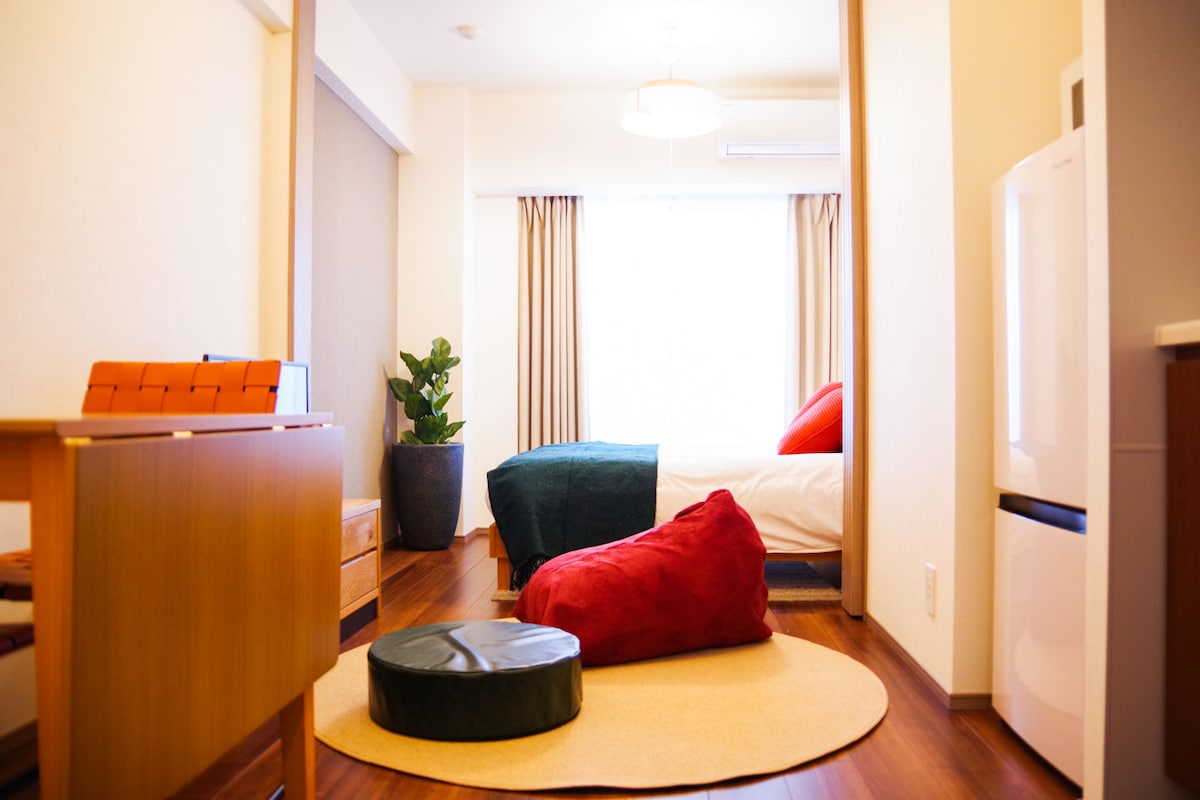 本館位於日本最高建築、東京最具代表性的觀光地標「東京晴空塔/押上站」步行僅 1 分鐘的絕佳位置,是一間昭和復古風格且自助入住的公寓式HOTEL. 🏡 26㎡ 雙人大床房|4樓|有電梯|有陽台 ・雙人床 1 張(160cm × 200cm) ・餐桌 1 張 ・餐椅 1 組 ◆ 品牌家電齊全: 免費Wi-Fi、冰箱、電磁爐、電鍋、微波爐、電熱水壺、洗衣機、吹風機、智慧型免治馬桶、冷暖空調、延長線、熱水器等,一應俱全,滿足長短期住宿需求. ◆ 生活備品完善: 洗髮精、潤髮乳、沐浴乳、洗手乳、洗碗精、洗衣精、毛巾、浴巾、室內拖鞋、牙刷牙膏、衛生紙、抽取式面紙、礦泉水、水杯等⋯ ◆ 獨立空間: 臥室、客廳、衣櫃、玄關、鞋櫃、廚房、衛生間、附浴缸的淋浴空間、洗手台、餐廳及專屬陽台⋯ 另提供簡易餐具與廚具. ◆ 乾淨安心: 由日本專業清潔團隊進行全面清掃,並依照星級飯店標準配置與更換床上用品,確保每位旅客皆能享有乾淨、舒適的住宿體驗.