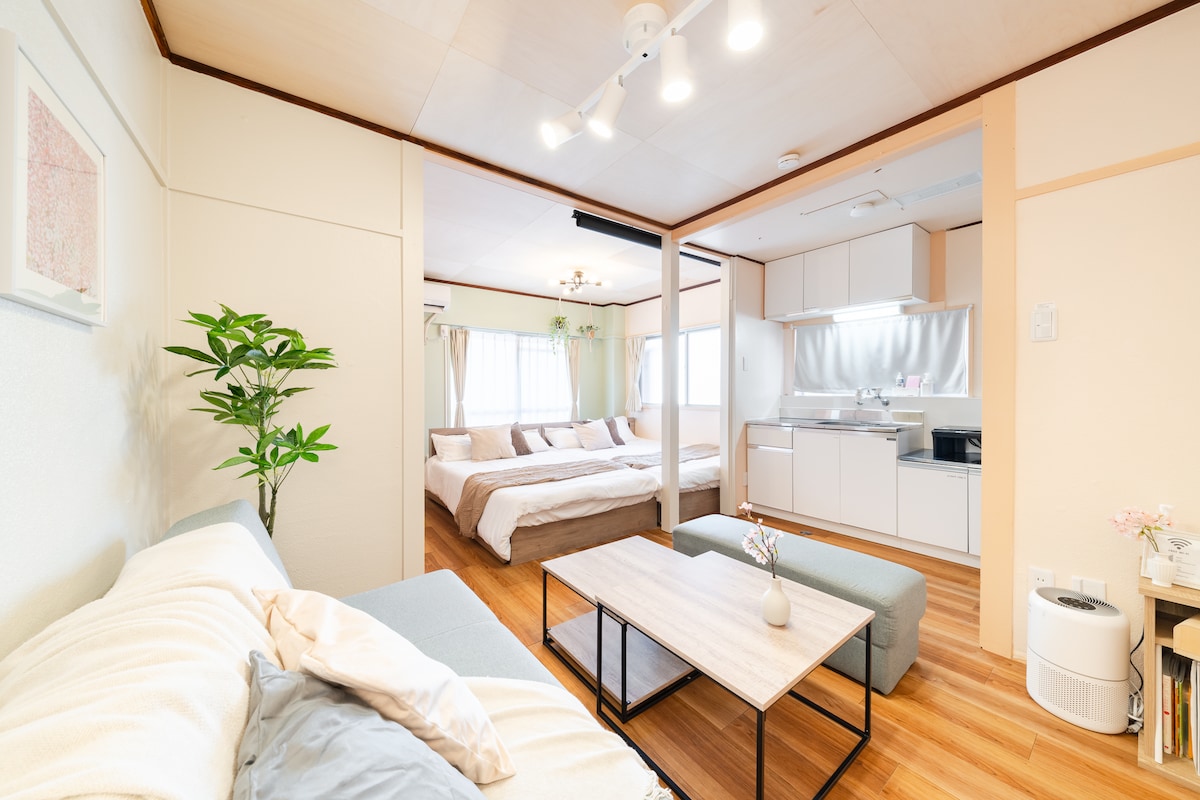 “Ikebana Stay” is a peaceful residence, just a 10-minute walk from Asakusa Station and close to popular spots like Kaminarimon Gate, Senso-ji Temple, and Tokyo Skytree. The room features lush plants and Ikebana, creating a serene and clean space. With thoughtfully selected furnishings, high-speed Wi-Fi, and air conditioning, it’s ideal for both short and extended stays. Fully equipped with a kitchen, washing machine, and dryer, it offers the comforts of home in central Tokyo.