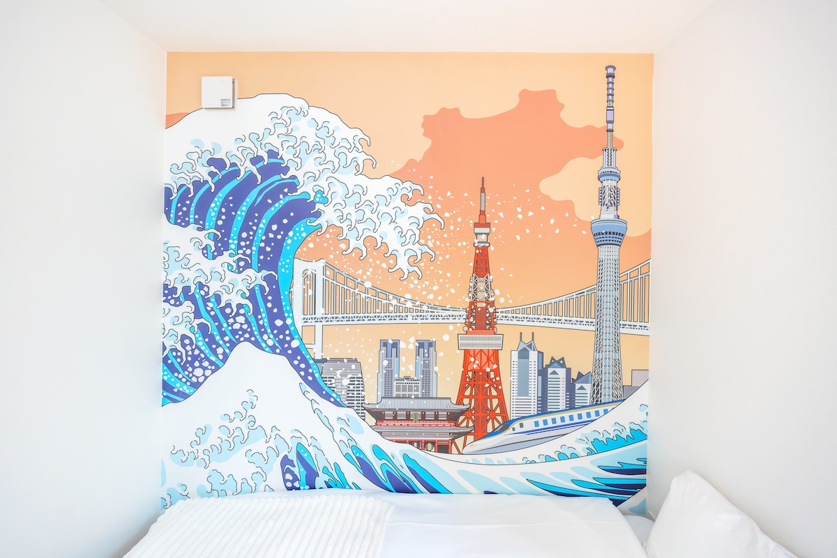 排名前5%的热门房源!99平方米浮世绘艺术包围的新建房屋,带屋顶|距离晴空塔步行6分钟·12人·免费停车