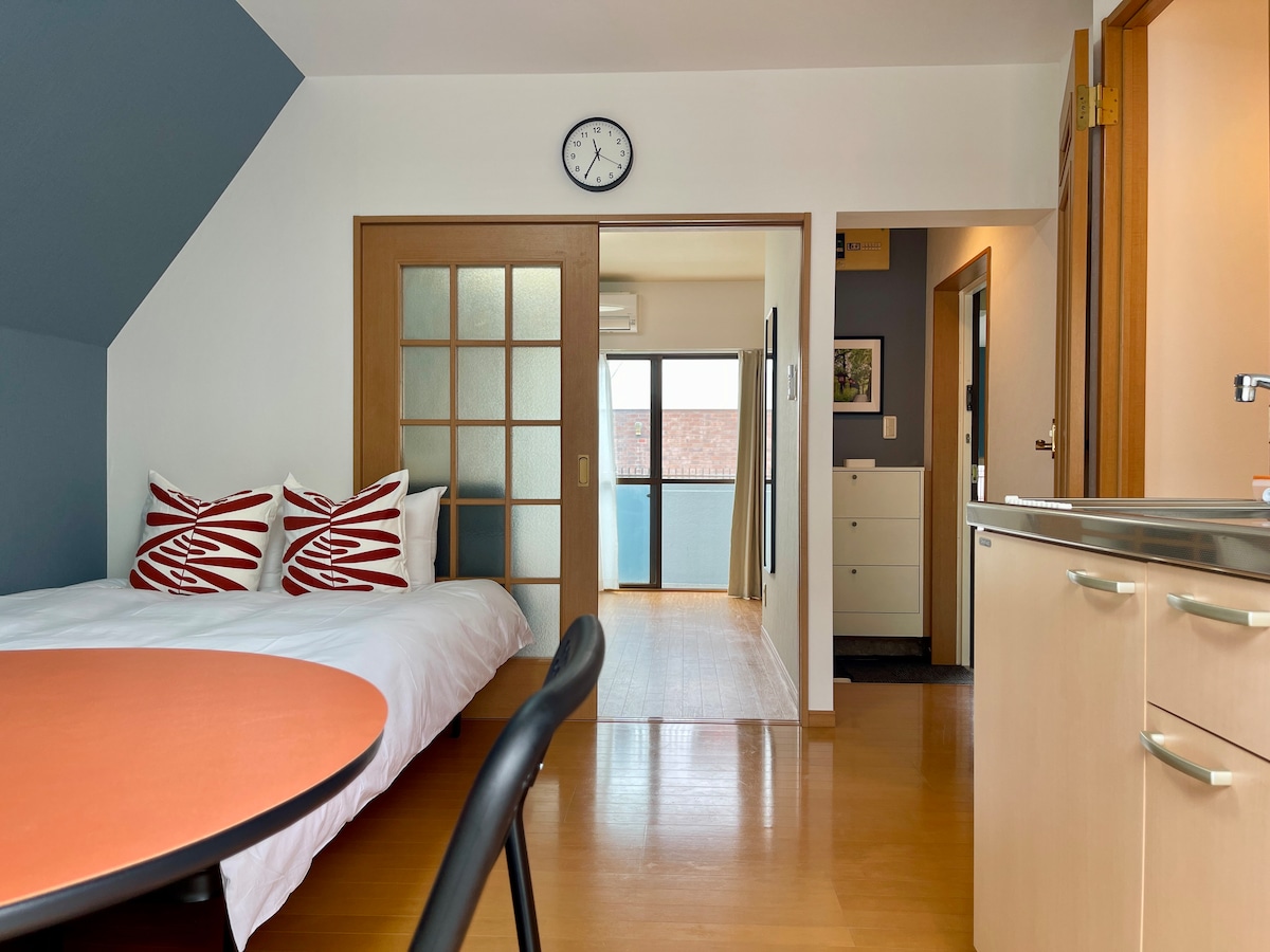 本館位於日本最高建築、東京最具代表性的觀光地標「東京晴空塔/押上站」步行僅 1 分鐘的絕佳位置,是一間昭和復古風格且自助入住的公寓式HOTEL. 🏡 26㎡ 雙人大床房|4樓|有電梯|有陽台 ・雙人床 1 張(160cm × 200cm) ・餐桌 1 張 ・餐椅 1 組 ◆ 品牌家電齊全: 免費Wi-Fi、冰箱、電磁爐、電鍋、微波爐、電熱水壺、洗衣機、吹風機、智慧型免治馬桶、冷暖空調、延長線、熱水器等,一應俱全,滿足長短期住宿需求. ◆ 生活備品完善: 洗髮精、潤髮乳、沐浴乳、洗手乳、洗碗精、洗衣精、毛巾、浴巾、室內拖鞋、牙刷牙膏、衛生紙、抽取式面紙、礦泉水、水杯等⋯ ◆ 獨立空間: 臥室、客廳、衣櫃、玄關、鞋櫃、廚房、衛生間、附浴缸的淋浴空間、洗手台、餐廳及專屬陽台⋯ 另提供簡易餐具與廚具. ◆ 乾淨安心: 由日本專業清潔團隊進行全面清掃,並依照星級飯店標準配置與更換床上用品,確保每位旅客皆能享有乾淨、舒適的住宿體驗.