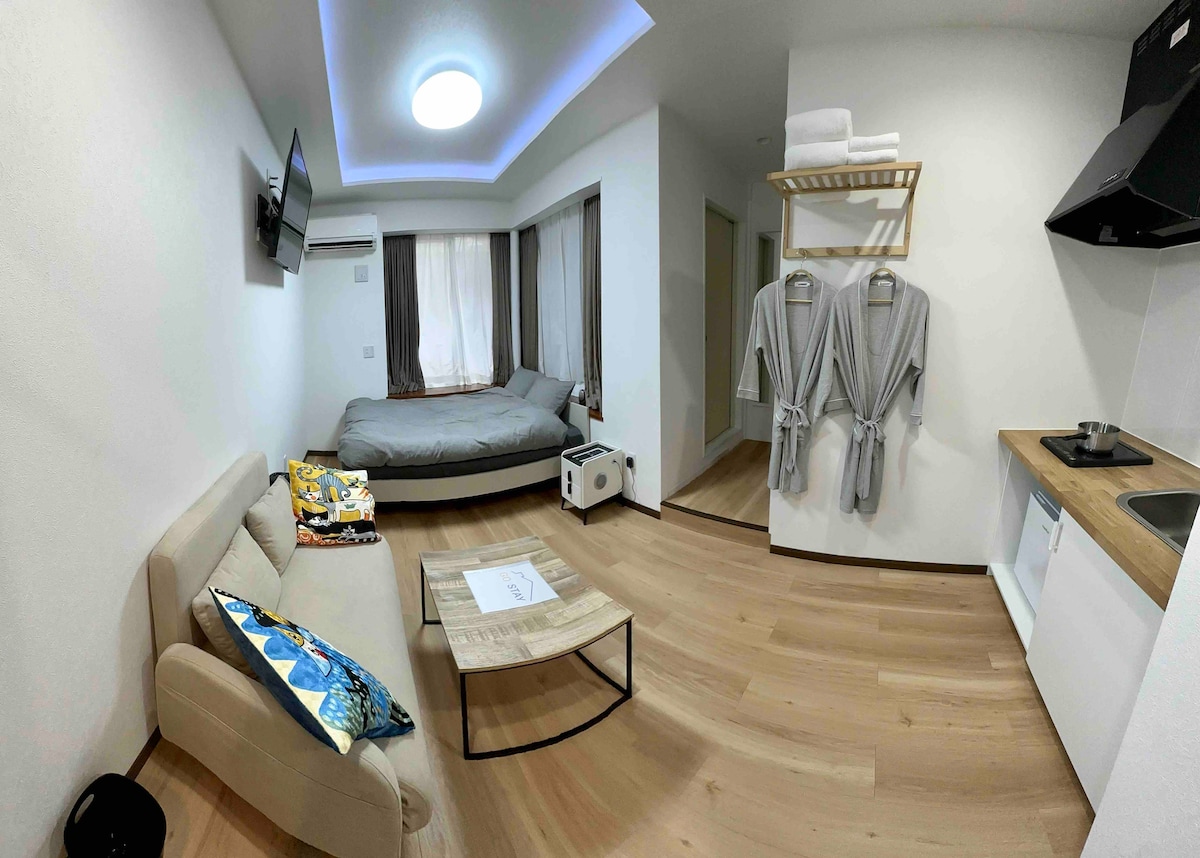 高耸民宿102/全套独立房间(带浴室)/大型水疗浴缸/厨房/每日免费毛巾/Netflix/专用阳台