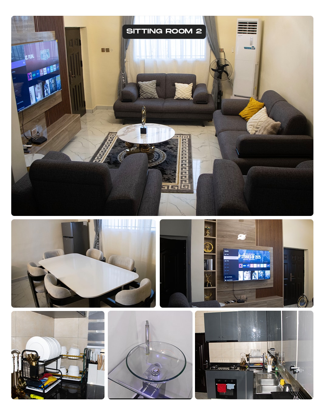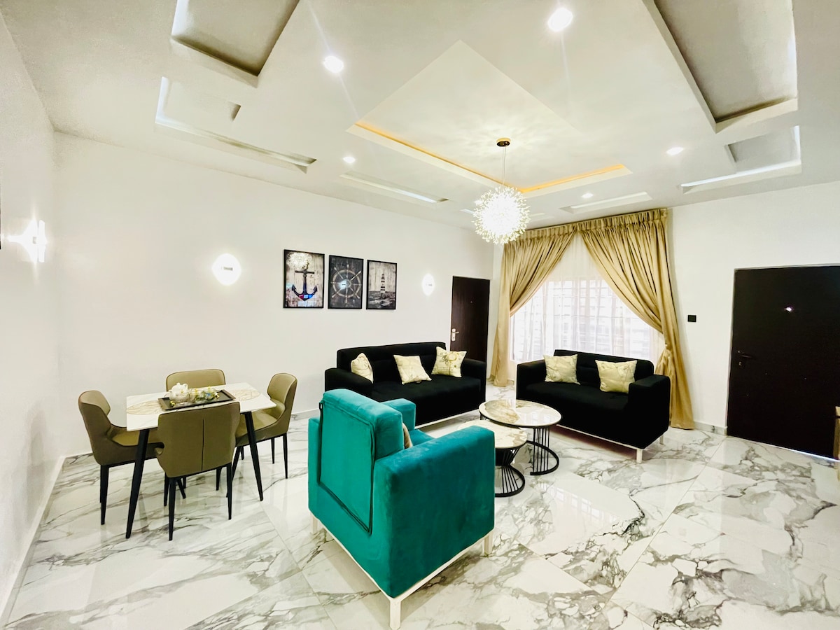 A cozy and modern 2-bedroom apartment perfect for families and individuals. Enjoy a fully-equipped kitchen with a serving area, a comfortable living room, and spacious bedrooms designed for relaxation. Located in a quiet, secure environment close to essentials and attractions, it’s the ideal space for work trips, getaways, or long stays. Your perfect home away from home awaits.