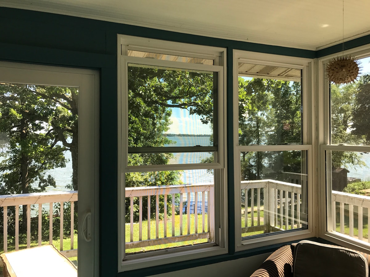Soak up the modern and vintage charm of our recently updated cottage. Cozy yet open floor plan with large windows and patio doors allow you to enjoy the peaceful view of the water and wildlife right outside your door .Our upstairs loft has 2 beds and serves as our third bedroom. Downstairs fully stocked kitchen spacious dining living area two bedrooms with plenty of closet space a laundry room with washer and dryer so you can enjoy all the comforts of home.