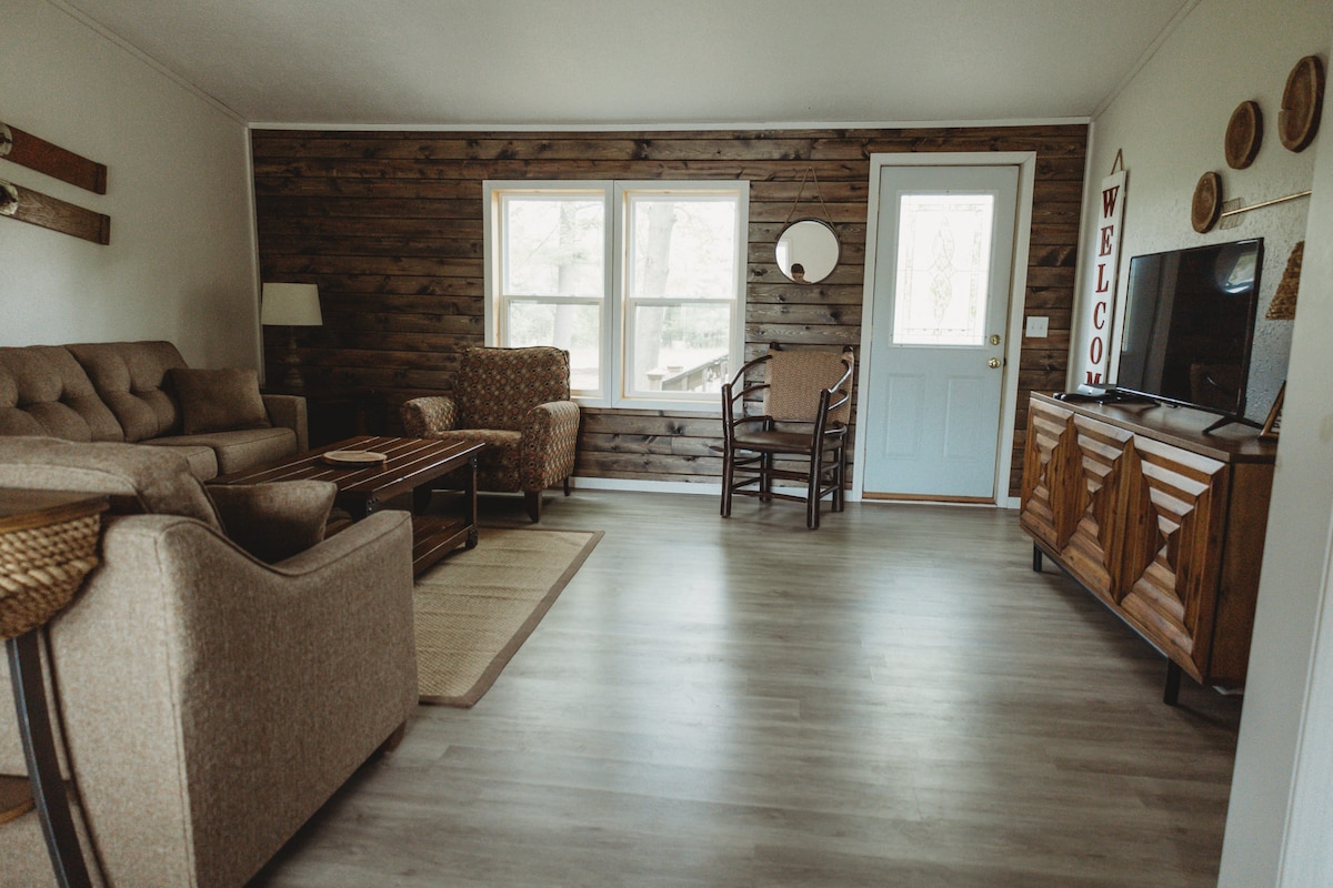The Cloverland Barndominium is a thoughtfully renovated 100-year-old barn sitting on 5+ private acres of forest to explore next to a river. You'll share the land with friendly goats and chickens that you can watch from right outside your window! Outside you'll enjoy walking the trails, feeding the animals, taking the canoe down the river, making a fire in the fire pit, and exploring the forest. Escape the busy world and reset!