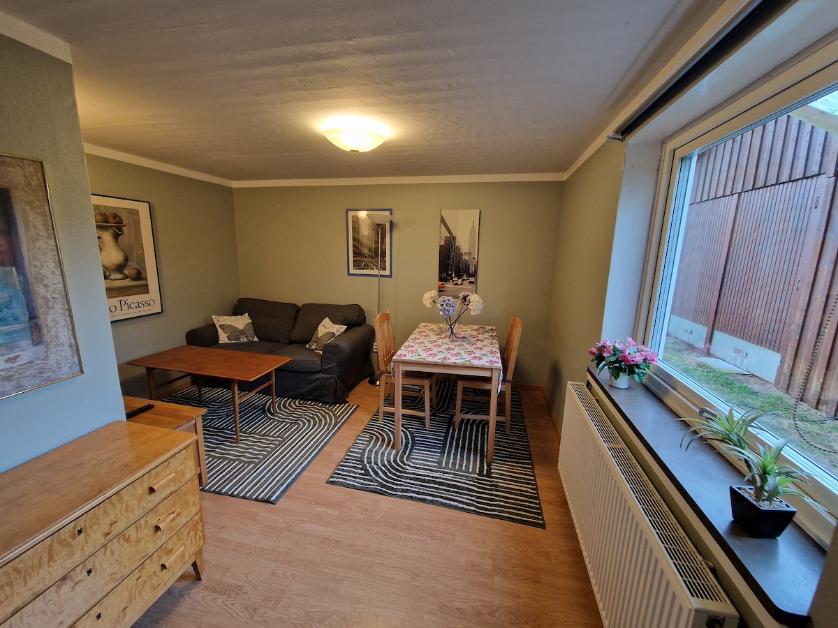Fräsch och välutrustad 2-rumslägenhet med egen ingång i lugnt område i centrala Borgholm. Nära till allt-centrum ,stranden, skogspromenader och slottsalvaret. Skön dubbelsäng i sovrummet och tillgång till två extra bäddar i bekväm bäddsoffa för två i vardagsrummet. Sängkläder, sänglinne och handdukar ingår. Egen mysig uteplats med grill , matplats och bekväma vilfåtöljer. Fullt utrustat kök.