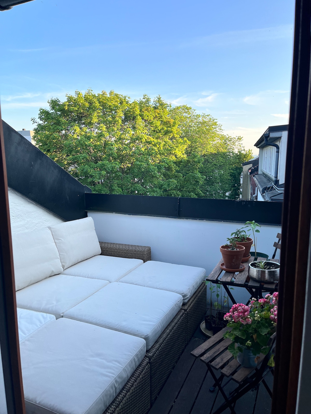 Welcome to this bright and modern 40 m² apartment on the 6th floor, overlooking the city with your very own private terrace – perfect for relaxing with a coffee or glass of wine. The apartment has one bedroom with a comfortable double bed and a spacious sofa bed in the living room that sleeps two. The bathroom is recently renovated, and the kitchen is fully equipped if you’d like to cook at home. Restaurants, cafés, and supermarkets are just around the corner.