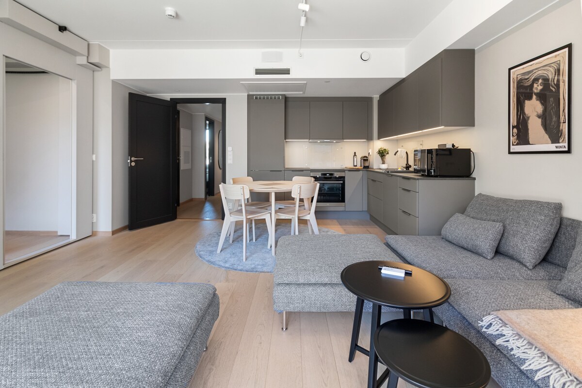 Welcome to Bjørvika, Oslo! Embrace urban living at its finest - a stone's throw away from the city's hottest attractions. The rooftop terrace offers stunning city views. Completed in 2023, this modern apartment is your perfect retreat. Centrally located, near Opera, Munch Museum, and Central Station. Fully equipped, cozy 2-bedroom with balcony. Heating, Nespresso, Wi-Fi, and TV provided. Barcode area boasts impressive architecture, with restaurants, cafes, and shops to explore.