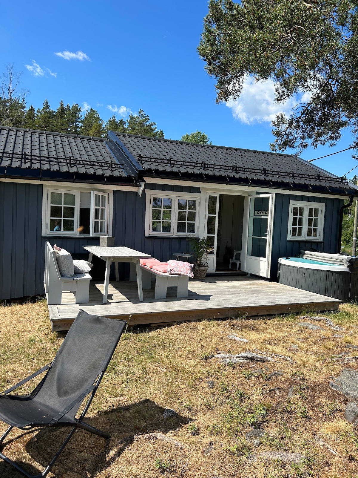 Enebolig fin terrasse, boblebad